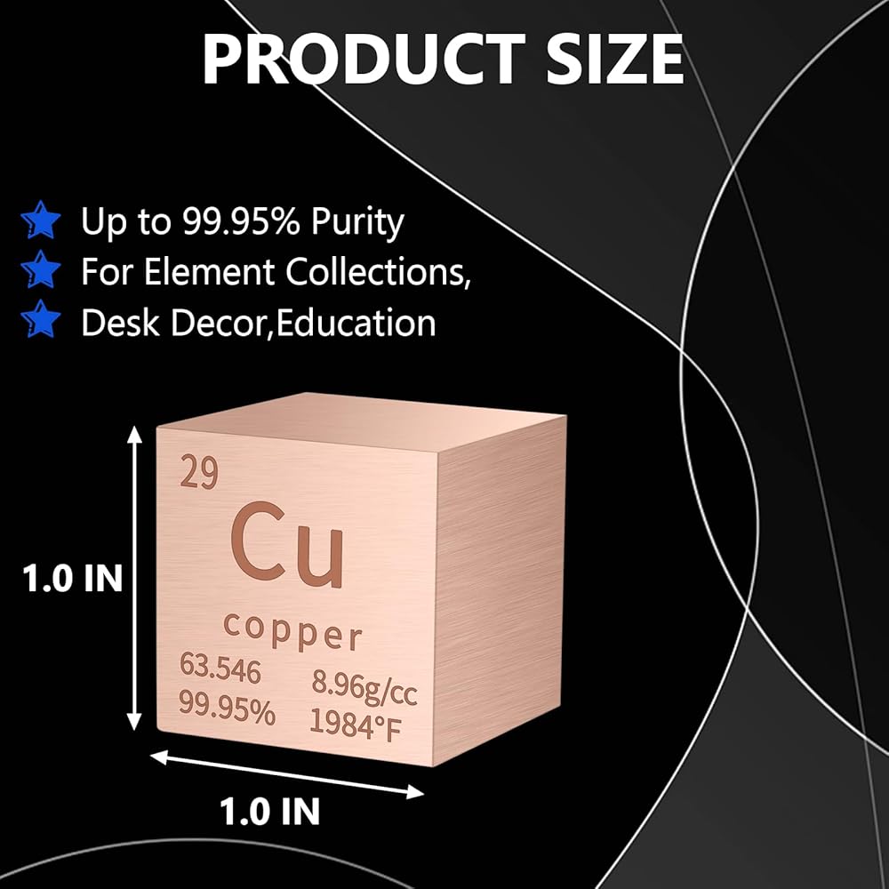 • 【RELIABLE MATERIAL】: Metal samples cubes are made of high density copper element cube, safe and reliable, which are practical educational applications for different grade levels, also are suitable for element collections and display.