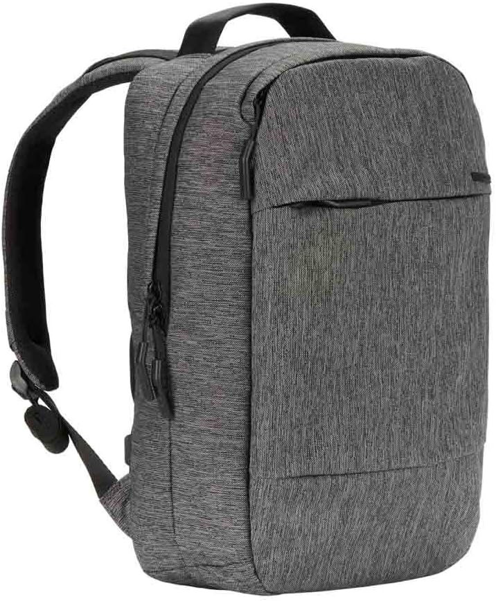 Up to 14" MacBook Pro Explore the city with daily essentials in tow using the City Dot Backpack. Ultra-light and equally as comfortable, it features ergonomic, air-mesh padded straps with excellent breathability. Two primary storage areas, inclusive of 360-degree laptop protection, carry and organize your MacBook and additional accessories while secondary quick-access pockets let you reach your smaller belongings more easily. Faux fur 360° laptop compartment protects a MacBook Pro 13" Adjustable padded shoulder straps for optimal comfort and ergonomic support The Heather Black colorway, made with Ecoya reduces CO2 emissions and uses 89% less water than conventional yarn dyeing methods while also creating a more colorfast fabric that stands up better to light, water and washing. 14 x 11.5 x 3 in Ecoya