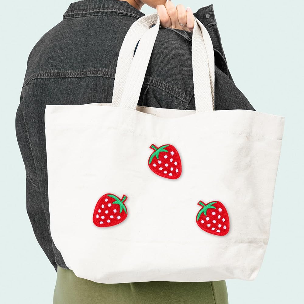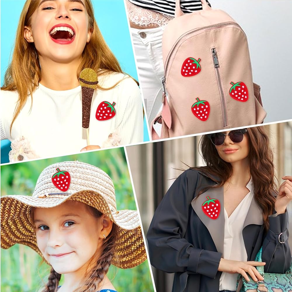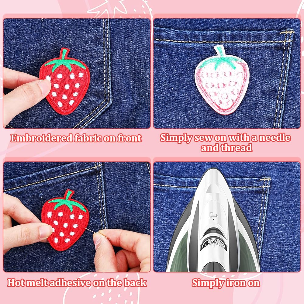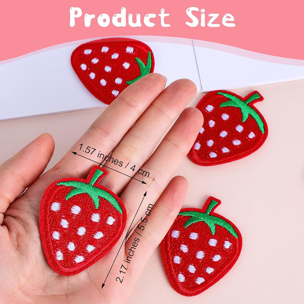 12 PCS STRAWBERRY PATCHES ، OSPROIDER BRAWBERRY IRON/SELE ON PATCH ، حديد الفراولة اللطيف على بقع لبنطلون سروال جينز جينز جينز معاطف معاطف الظهر DIY (الأحمر)