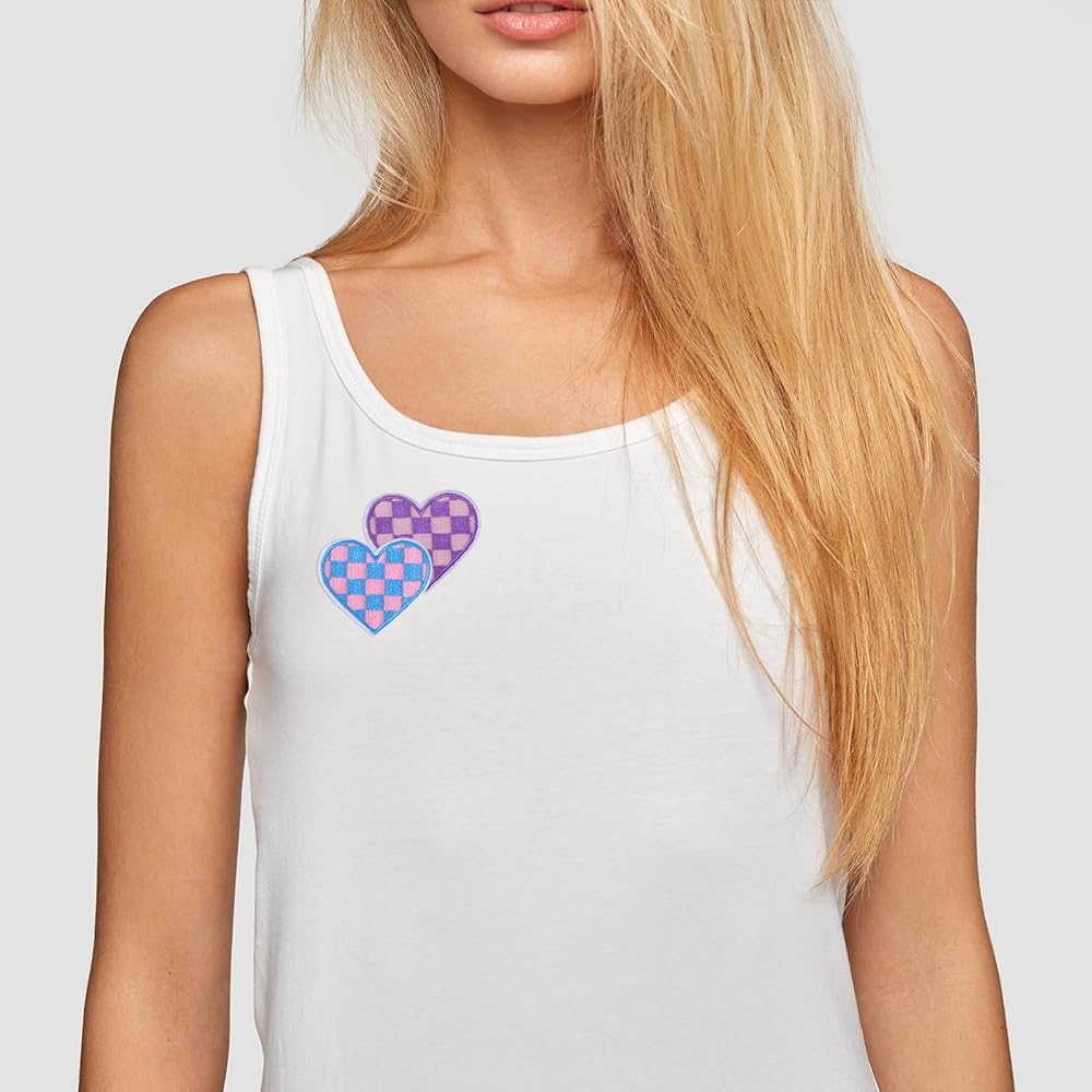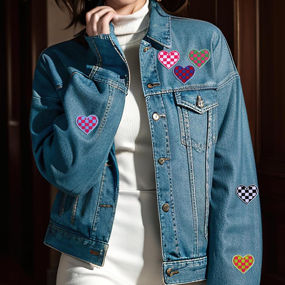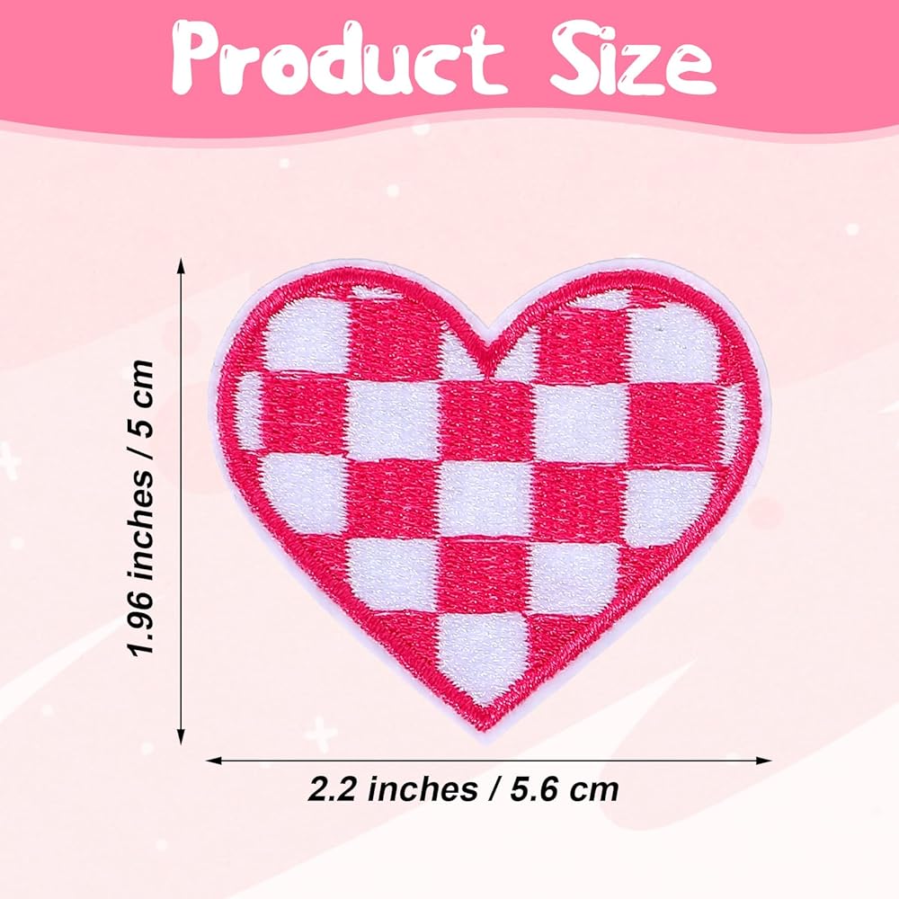 [Your Checkered Heart Patches Set] - Add a stylish and classic touch to your clothing and accessories with our set of 12 heart iron-on patches.