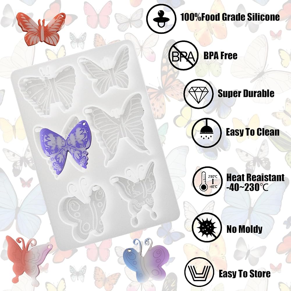 These molds are also easy to clean—just wash with soap and water—and their compact size makes them easy to store. Create beautiful, personalized jewelry pieces for yourself or as thoughtful gifts for friends and family with our Butterfly Resin Silicone Mold set.