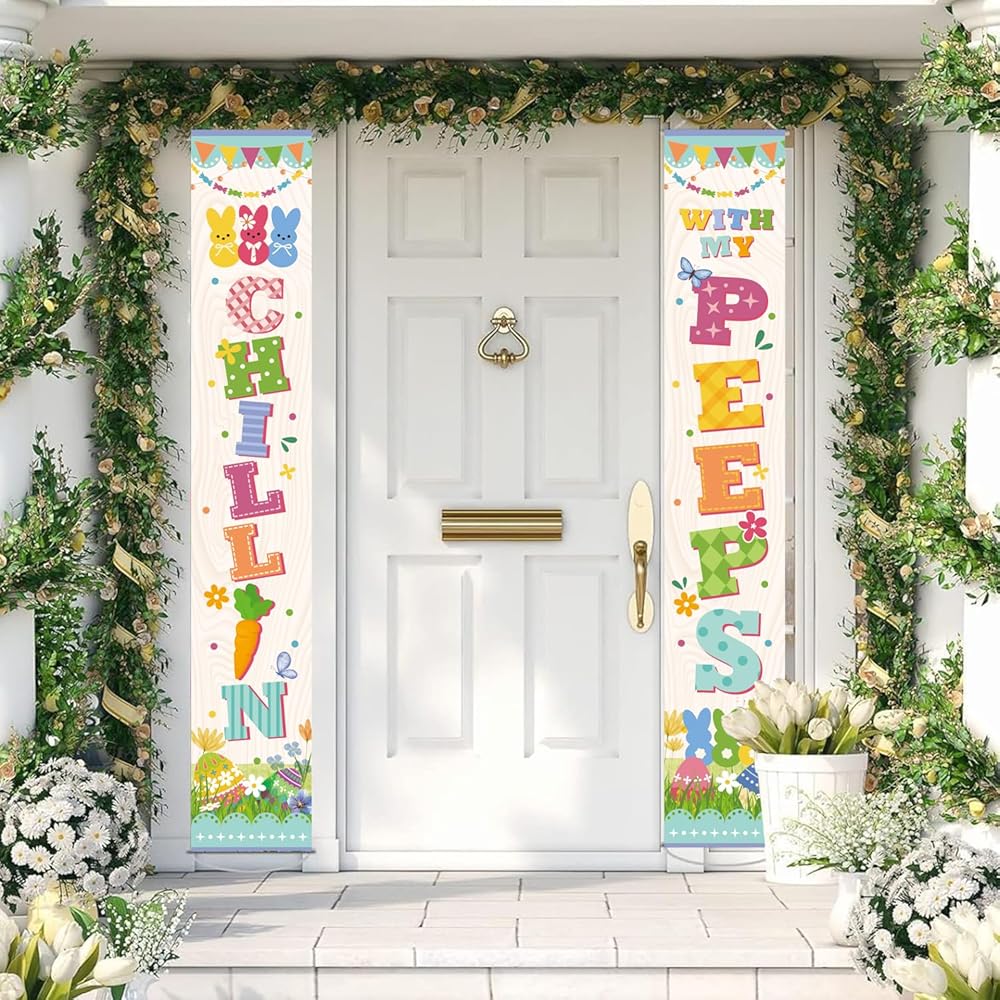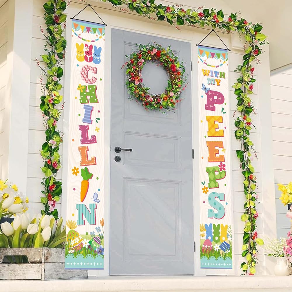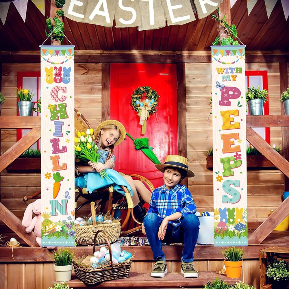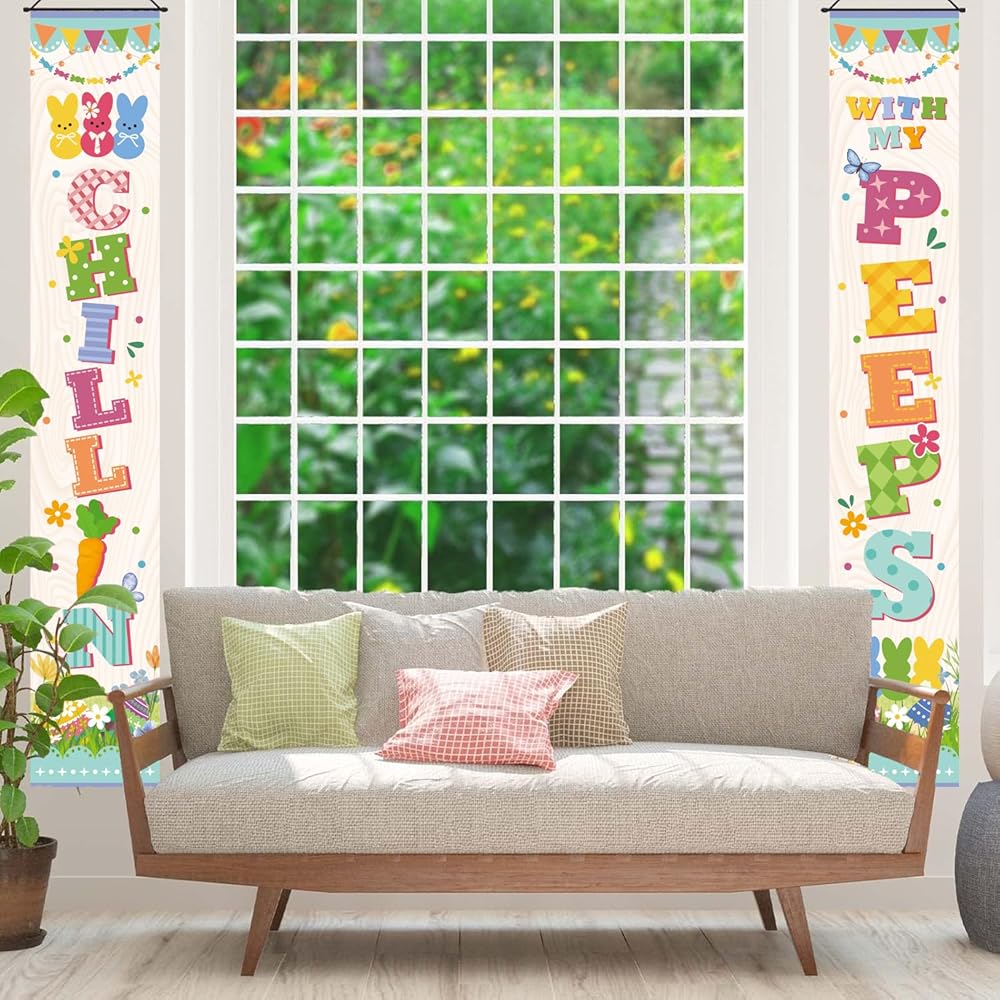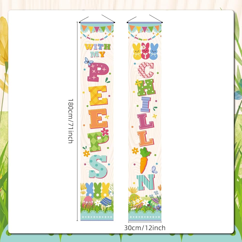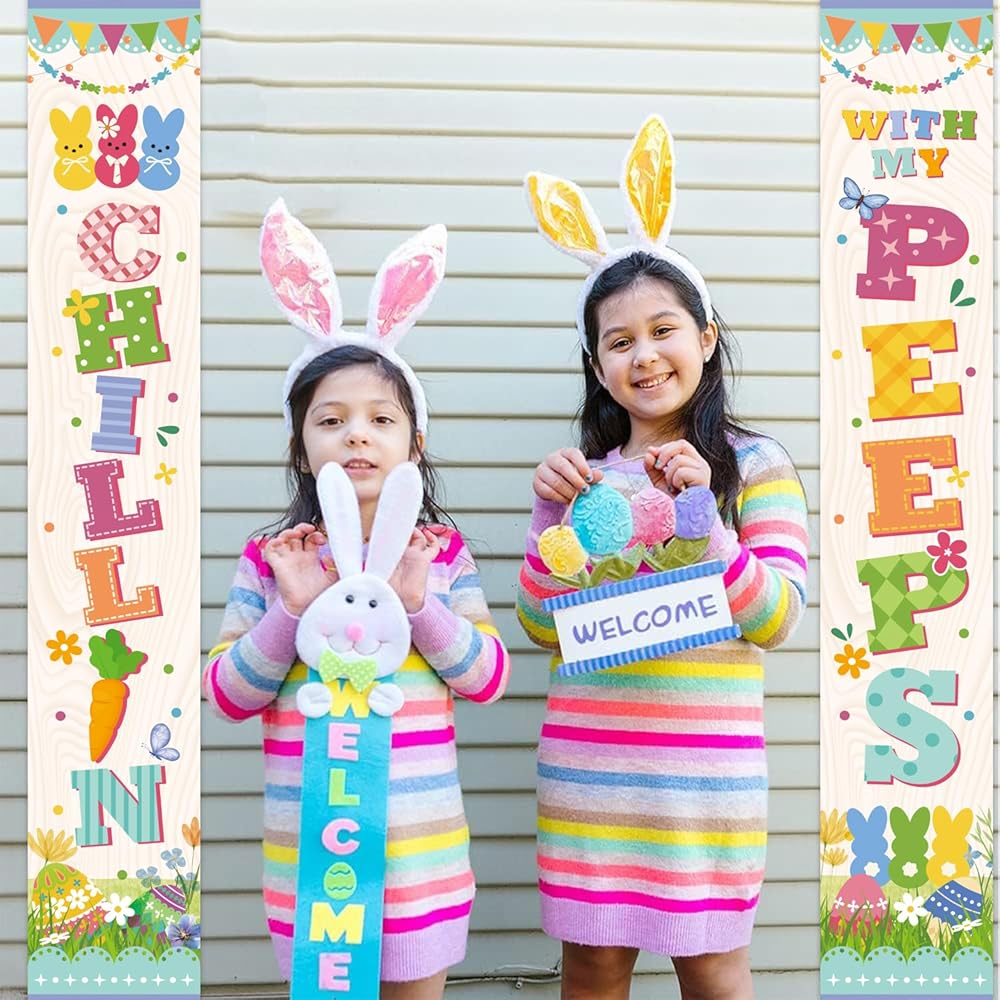 Package Content: Our package include 2pcs Easter porch sign banner, each measuring about 71x12inch. The Easter banner decorations features with Easter Bunny sign,etc,which fits the theme of Easter.