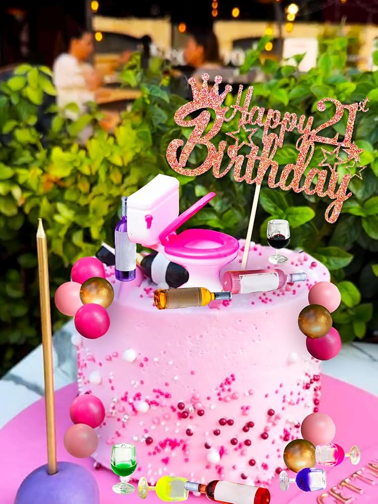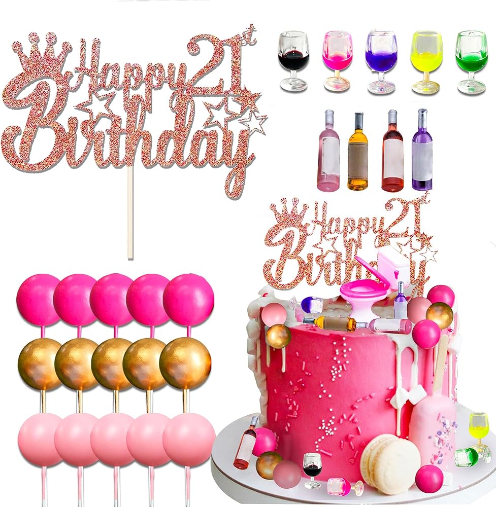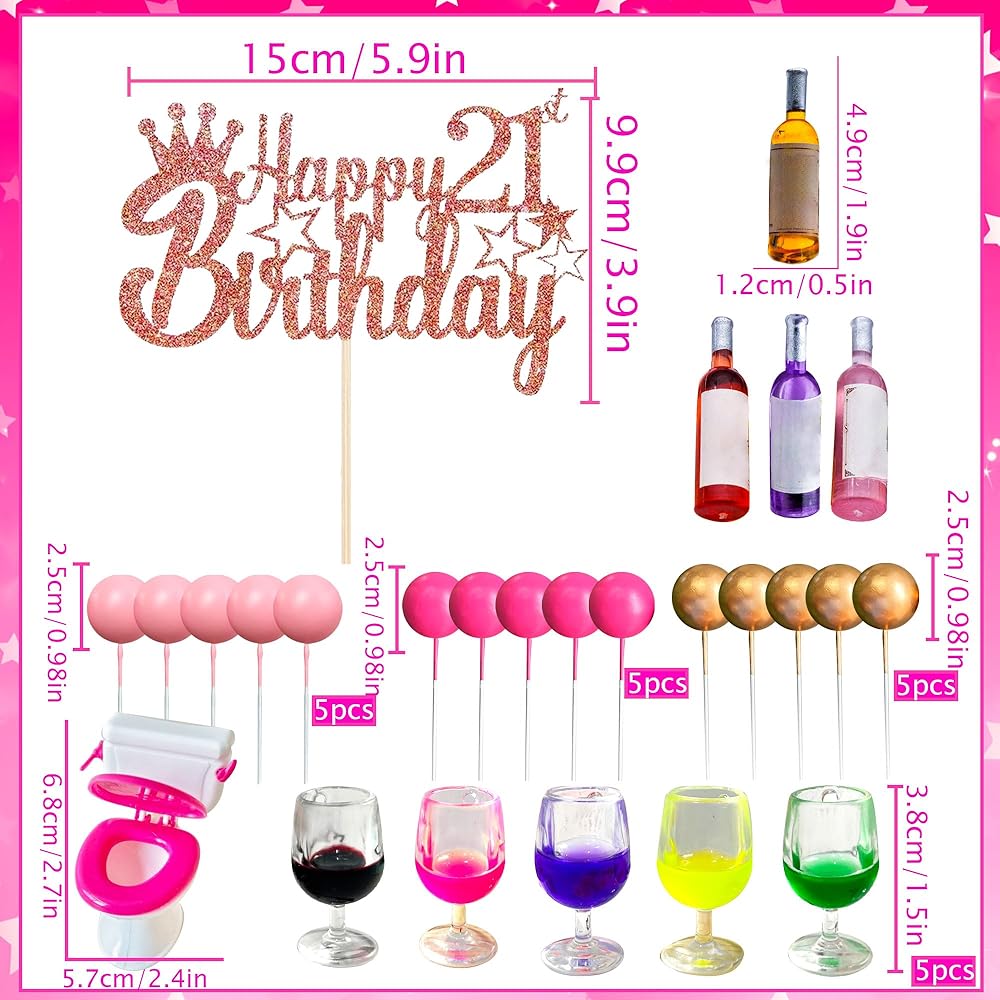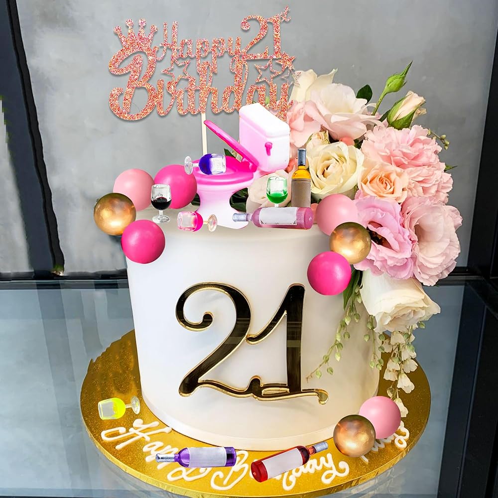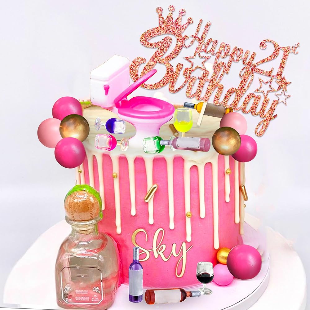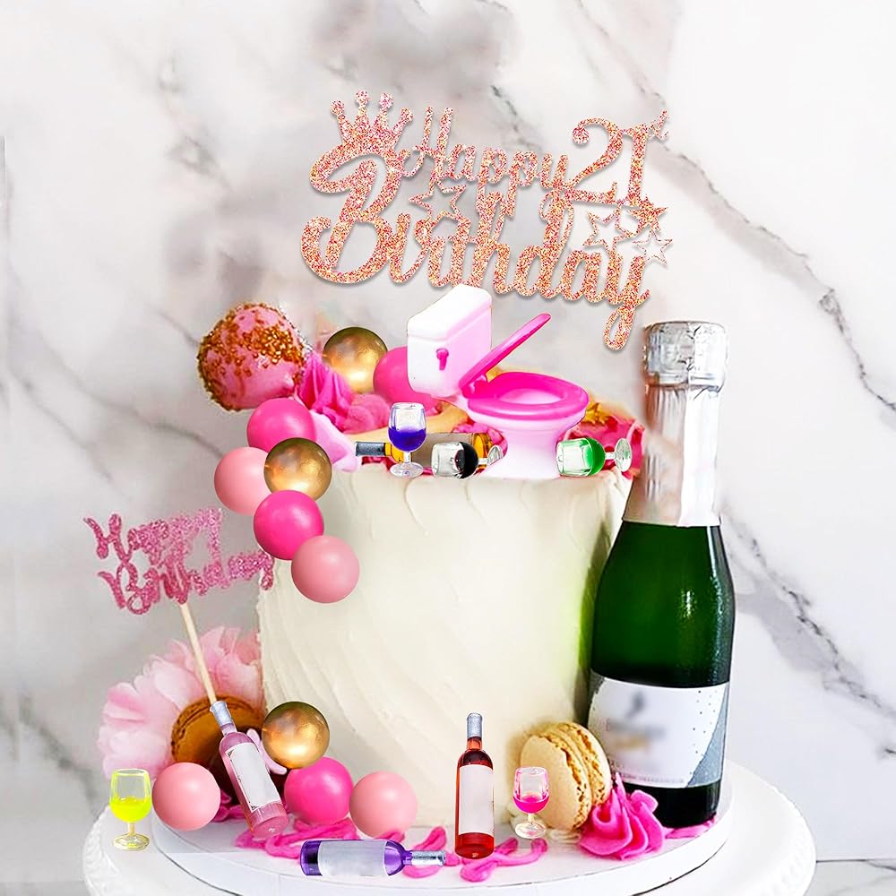 Jevenis 21 كعكة عيد ميلاد الكعكة توببر لزخارفها في زجاجات النبيذ المصغرة كعكة أعلى الأقطار النبيذ مرحاض عيد ميلاد الحادي عشر ديكور الدمية لوازم الحفلة اللوازم