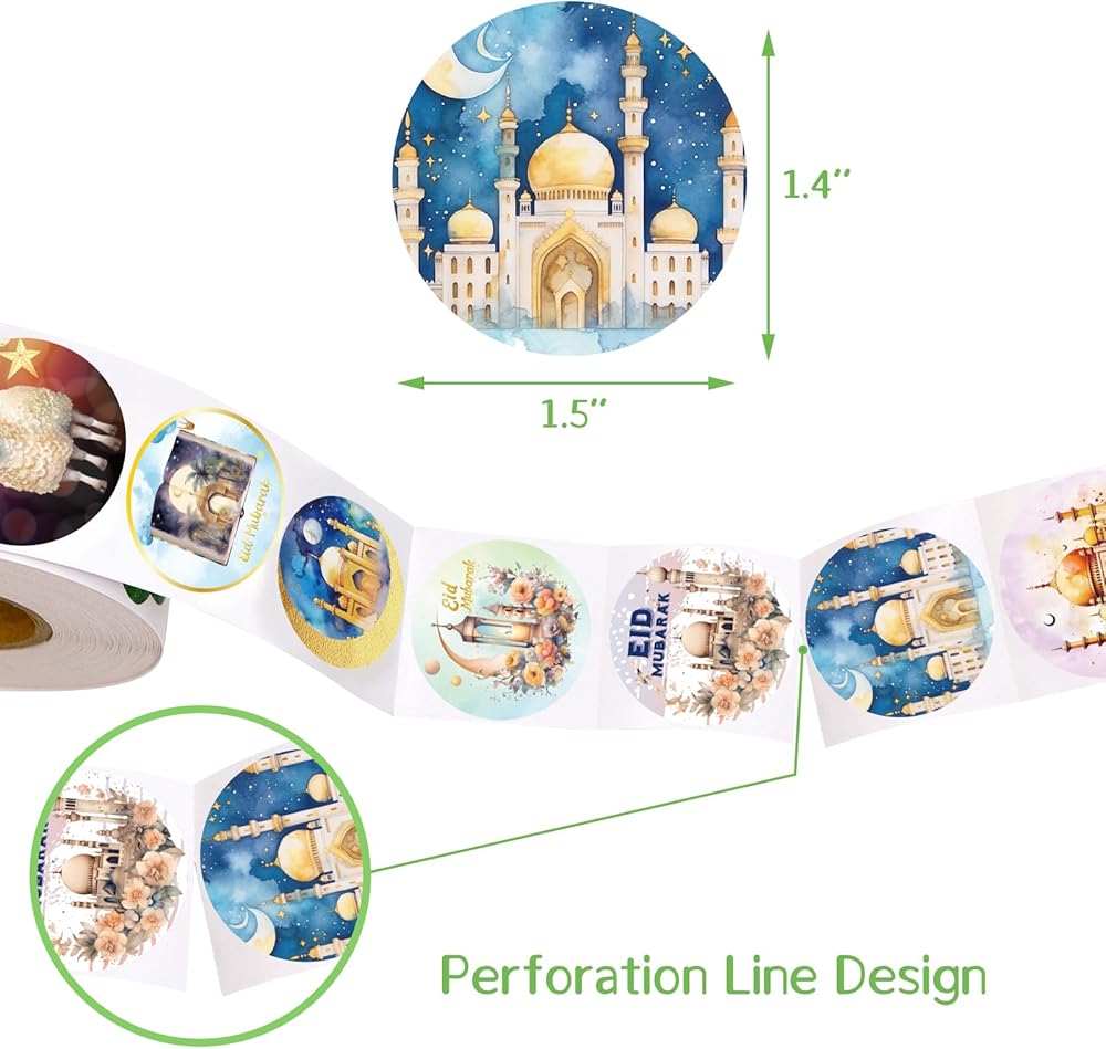 - ما تحصل عليه - 500pcs ملصقات رمضان لكل لفة. 1 1/2 "لكل ملصق. هناك 9 تصميمات مختلفة.