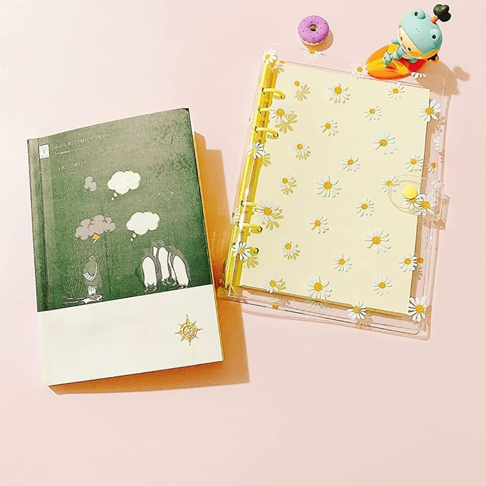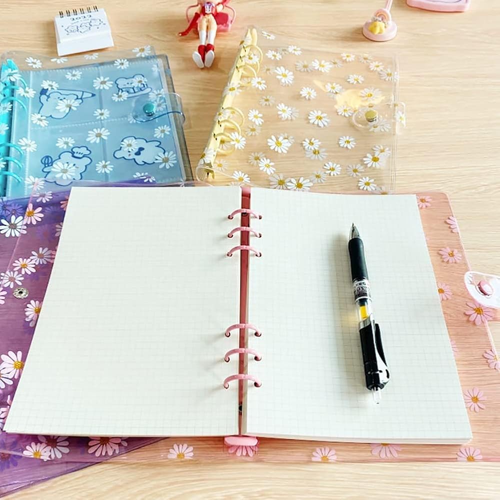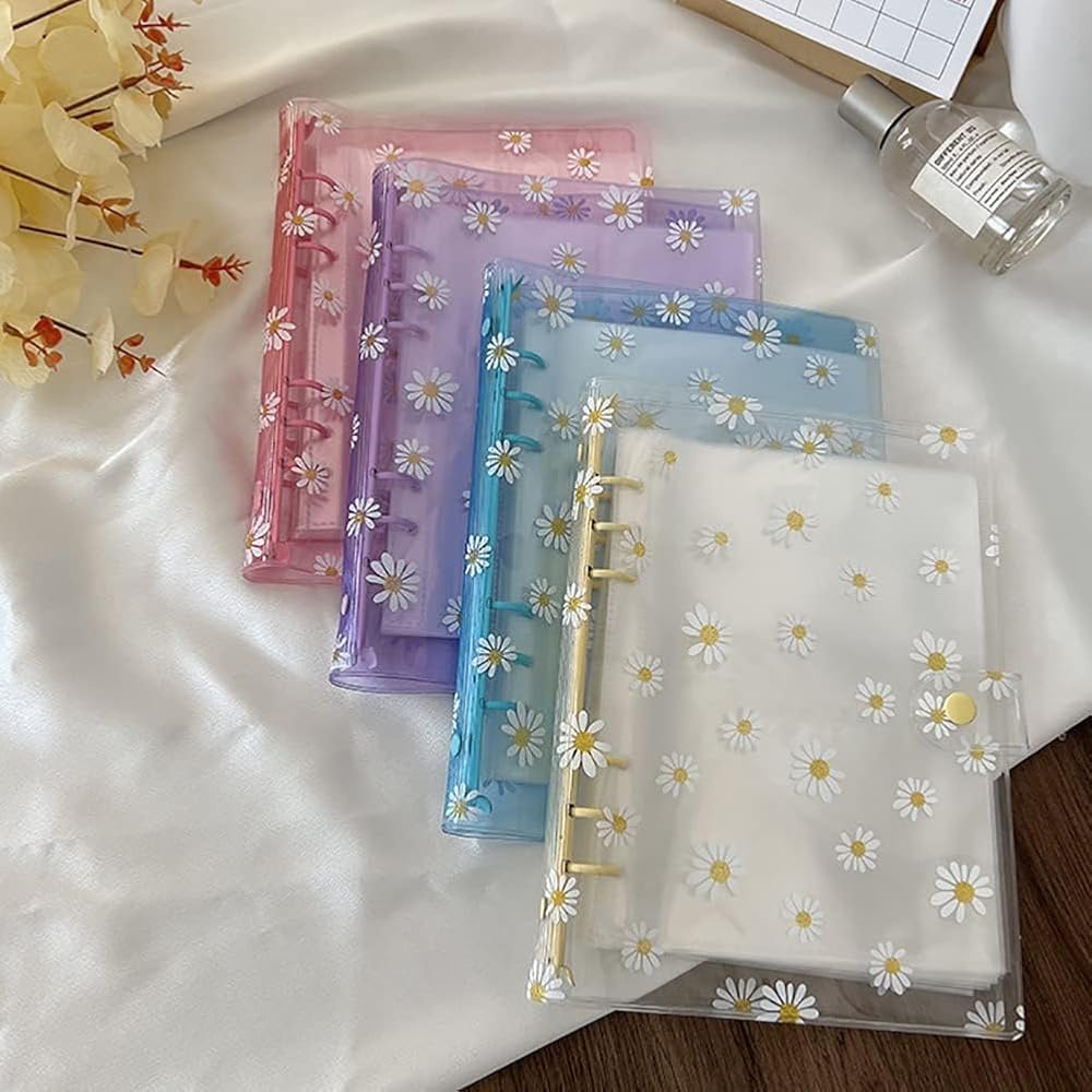 Blue A6 6 ثقوب شفافة Daisy PVC Cover Cover Cover فضفاضة ورقة الورقة الدائرية رعاية المجلد Binder Notebook Planner مع المجلدات الدائرية الدائرية