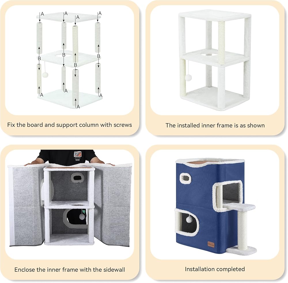 【مريح ومستقر】 يتكون قاع القطة المكونة من طابقين من لوحة عالية الكثافة لضمان قدرة حاملة للحمل القصوى 33 رطلاً. حتى أكثر الفتات المرحة يمكن أن تلعب والقفز دون المساس بتكامل الهيكل. MDF والوظائف ملفوفة مع أفخم حول الثقوب للراحة