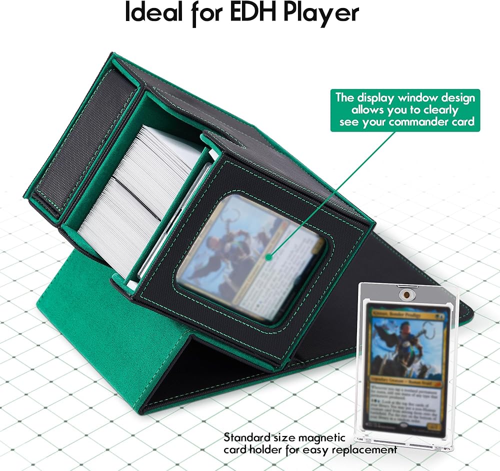 • مثالي للمشغلات EDH: يحتوي مربع Deck Commander الحاصل على براءة اختراع لدينا على فتحة تصميم مخصصة ، يمكنك بسهولة عرض شخصية القائد من خلال نافذة العرض دون فتح MTG Deckbox