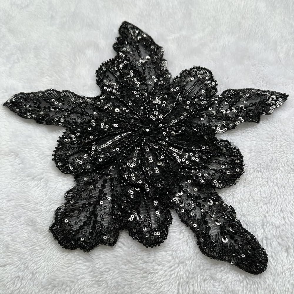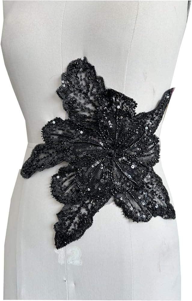 Jpumley.pksn handmade beaded appliqué! This beautiful 12X10inches lace patch is made with high-quality beads sequins sewn on for a durable and glamorous look that will make your dress or outfit stand out from the crowd.