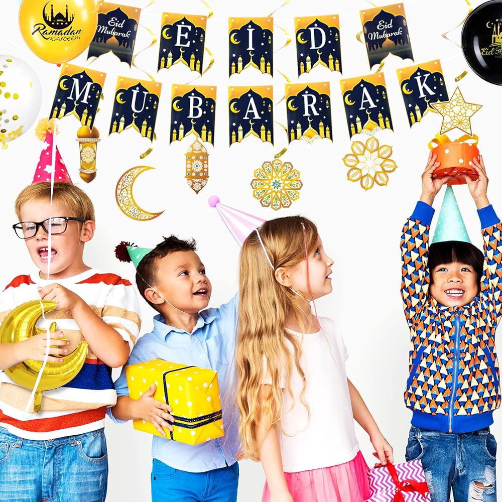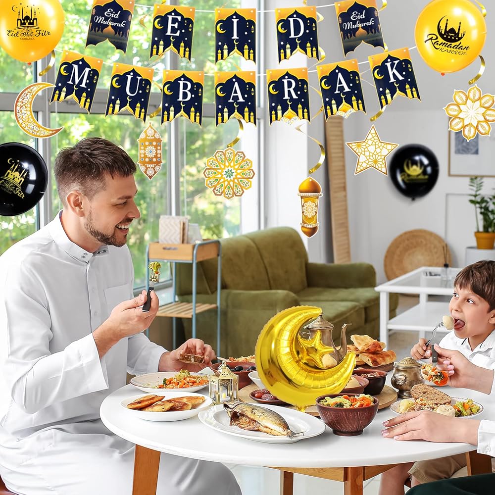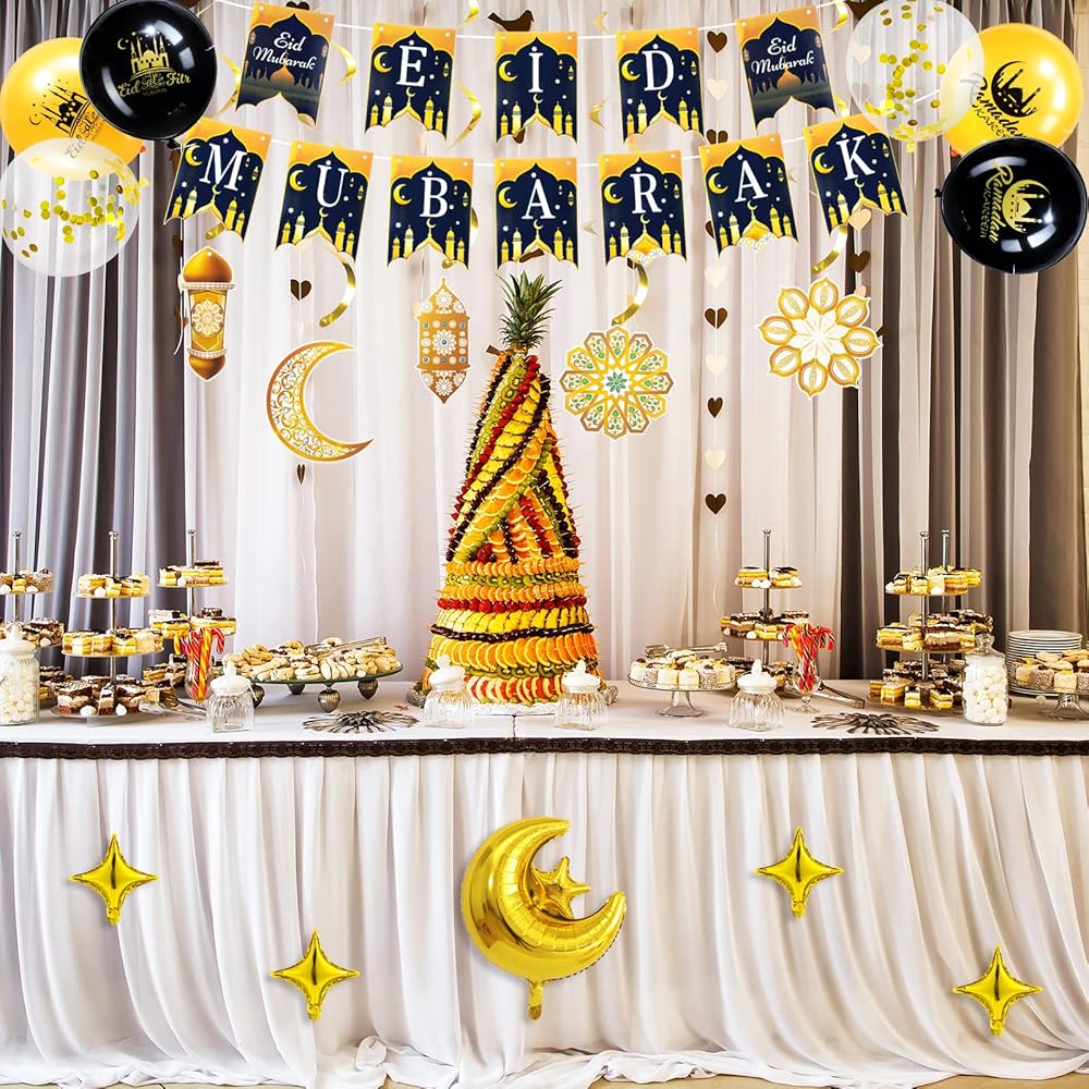 These attractive banner are beautiful decors for Ramadan Mubarak, Happy EID, Hari Raya, Eid al-Fitr, Lesser Bairam parties, and other Islamic festivals and themed celebrations, birthday, baby shower, wedding.