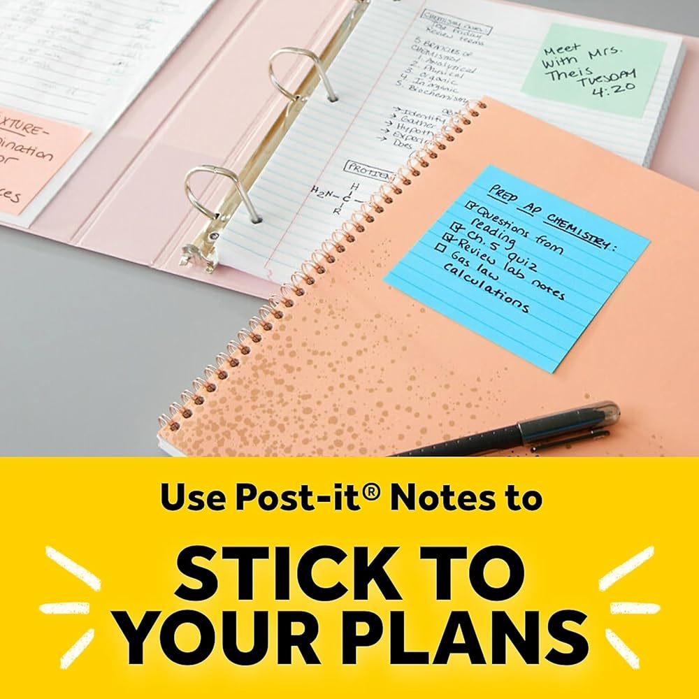 Unique adhesive designed for use on paper or in planners. The paper in Post-it Notes is sourced from certified, renewable and responsibly managed forests.