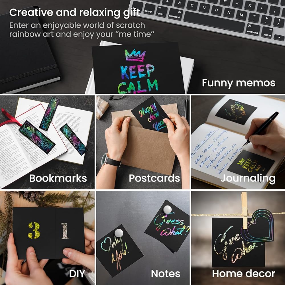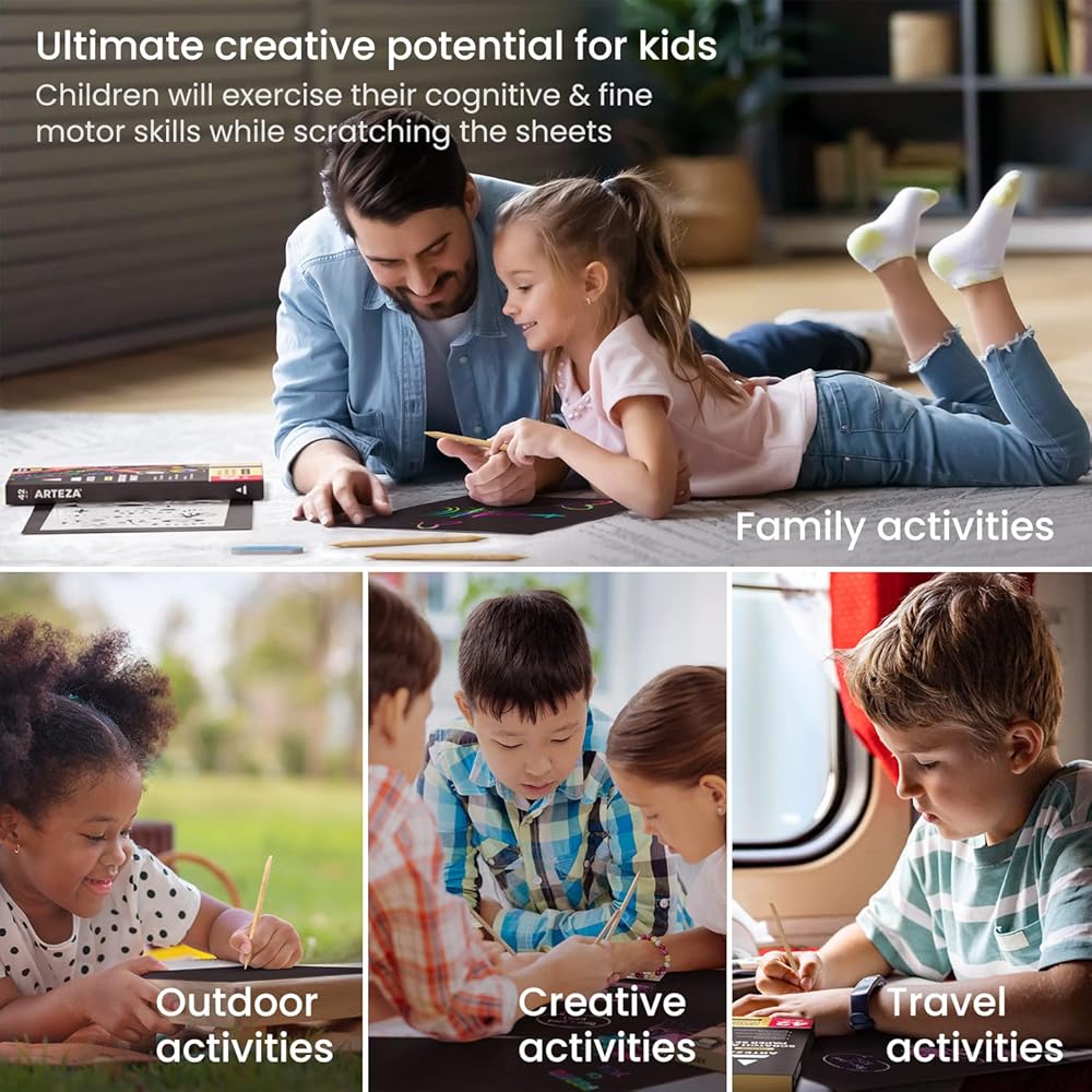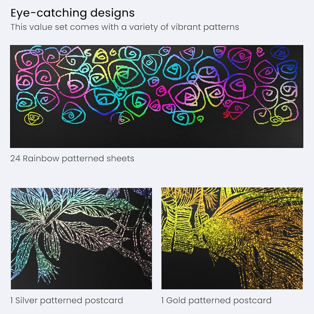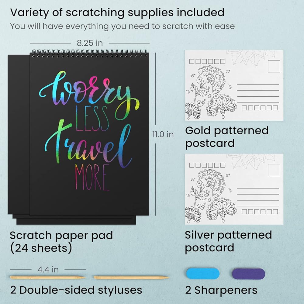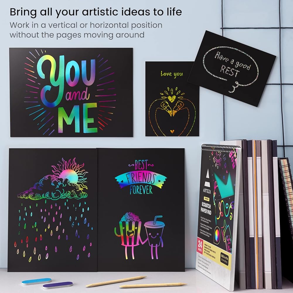 ورقة خدش Arteza ، مجموعة من 24 ورقة ، 8.25 × 11 بوصة ، مجموعة تشمل 24 ورقة قوس قزح ، 2 خدش ، 2 الإستنسل ، بطاقتين بعد ، اللوازم الفنية للمشاريع الحرفية و DIY