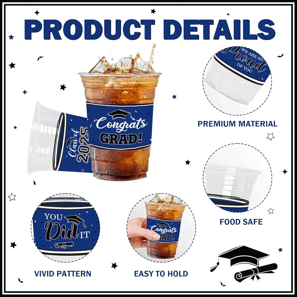 مواد الجودة: تخرج التخرج مصنوع من مواد الحيوانات الأليفة ، قوية وبدون رائحة سيئة. لن تتلاشى أو تكسر بسهولة ، آمنة للمشروبات الباردة. سواء كان الآيس كريم أو الوجبات الخفيفة أو البيرة أو القهوة أو الشاي ، يمكنك استخدام أكواب حفلات العيد بثقة