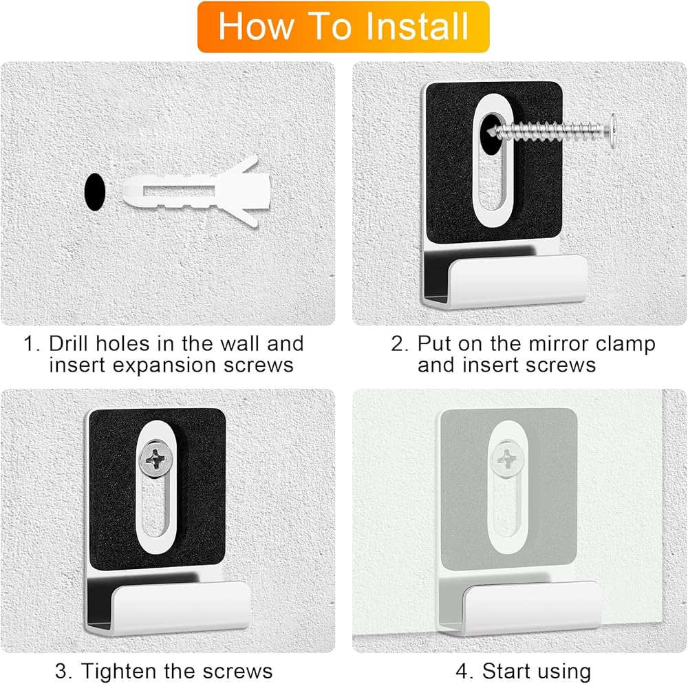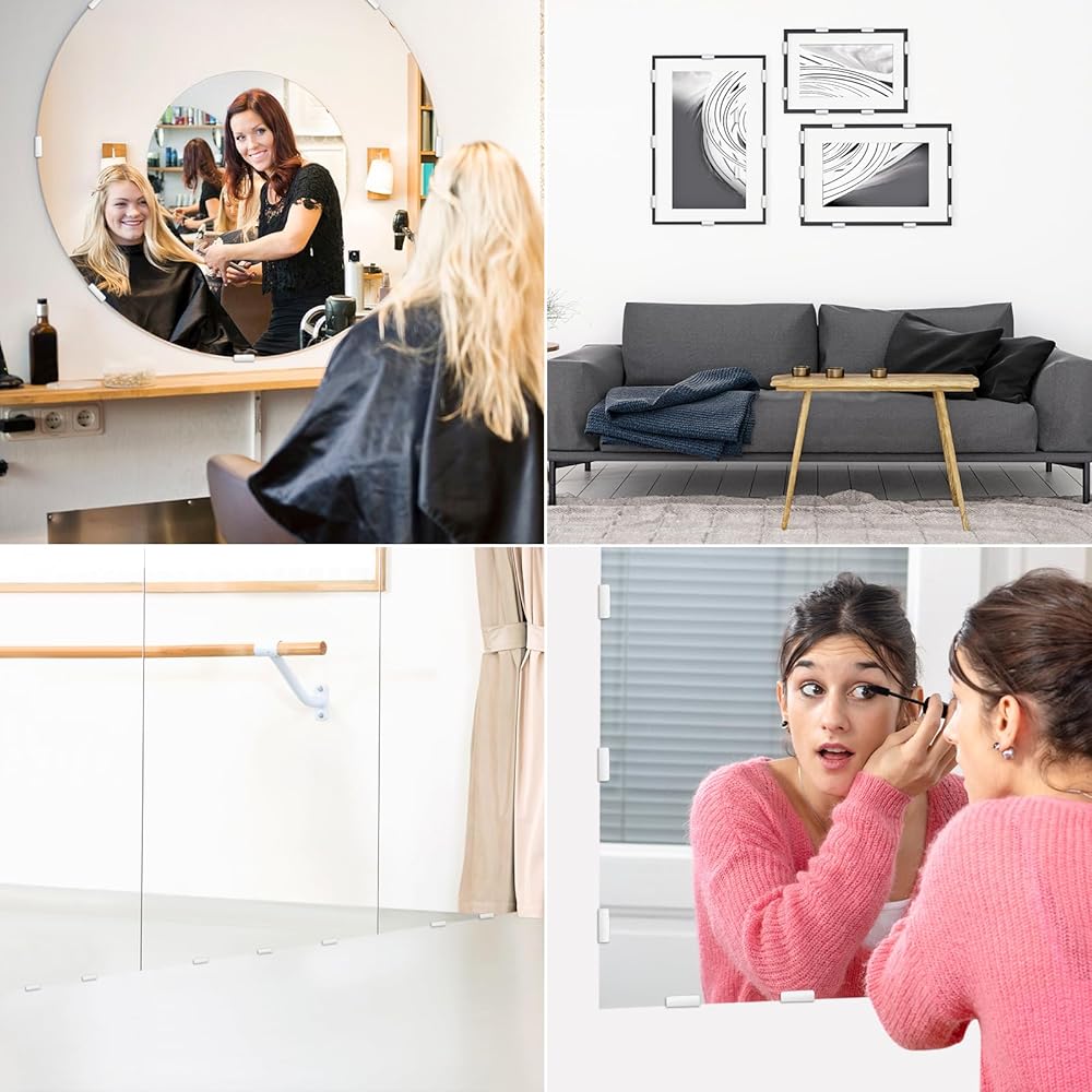 تطبيق متعدد الاستخدامات: مجموعة قوسين Metal Mirror مثالية لتركيب المرايا بدون إطار وإطارات الصور والبلاط واللوحات الإعلانية ، ويمكن استخدامها في المنزل ، والحمام ، والصالة الرياضية ، والمكتب ، والمرآب ، والطابق السفلي ، إلخ.