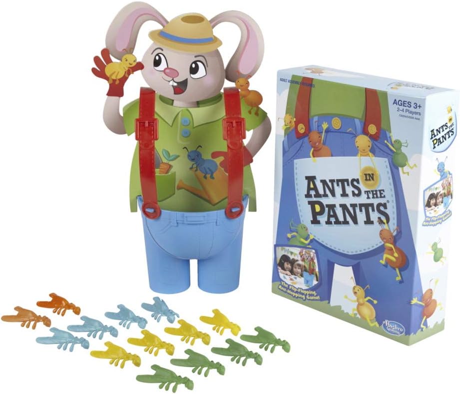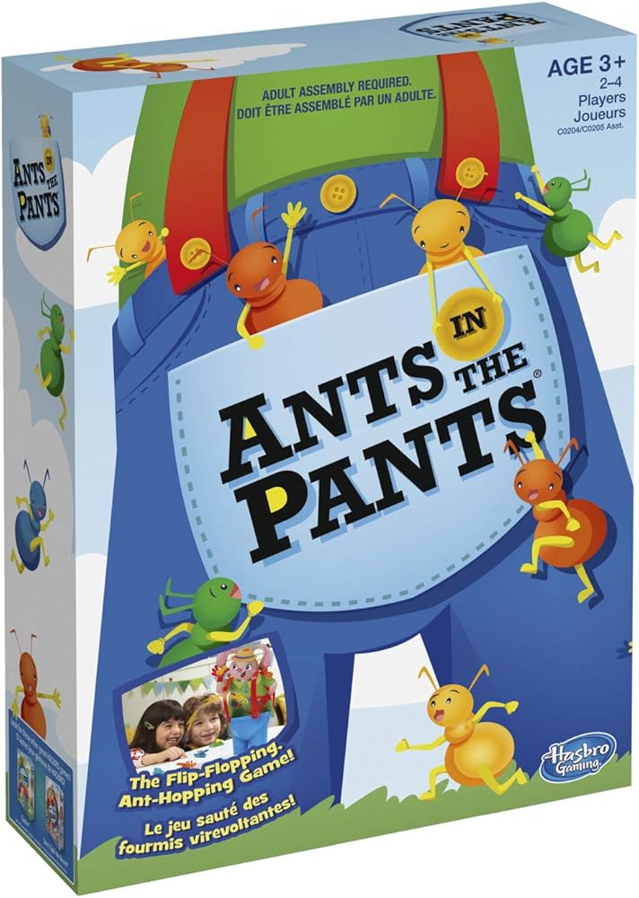 Kids just might be on the edge of their seats the whole time they're playing the exciting Ants in the Pants game. This action-packed game starts on the count of three, as players try to launch all 4 of their ants into the pair of oversized pants to win the game. Hasbro Gaming and all related terms are trademarks of Hasbro.