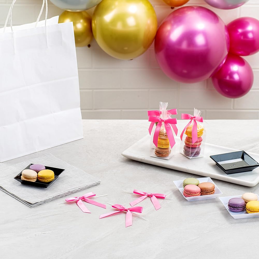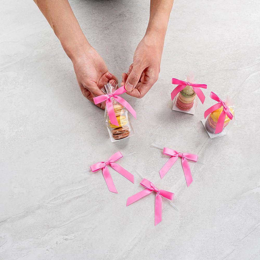 YOU'LL RECEIVE 100 TWIST TIE BOWS PER ORDER: These gift ribbons measure 3 inches in length by 2.5 inches in width, allowing you to ignite your creativity. Each order includes 100 twist tie bows.