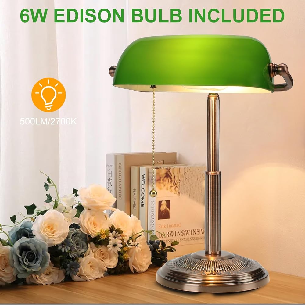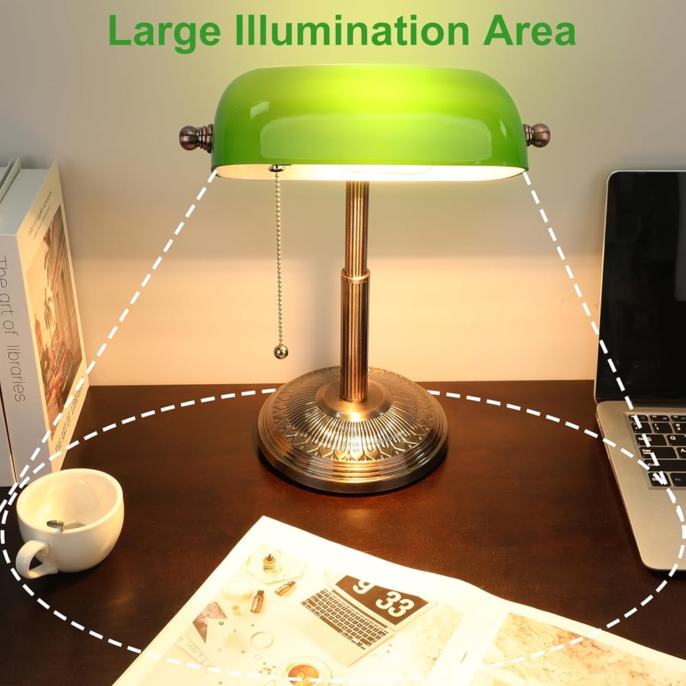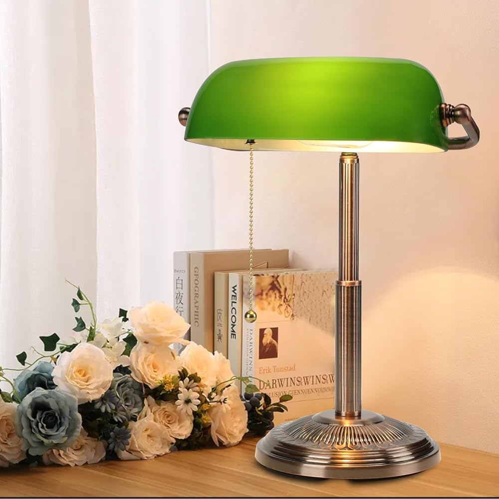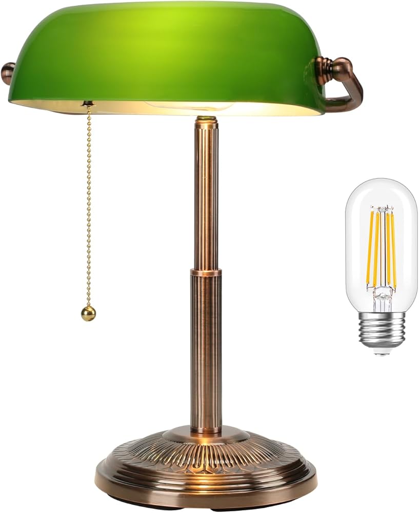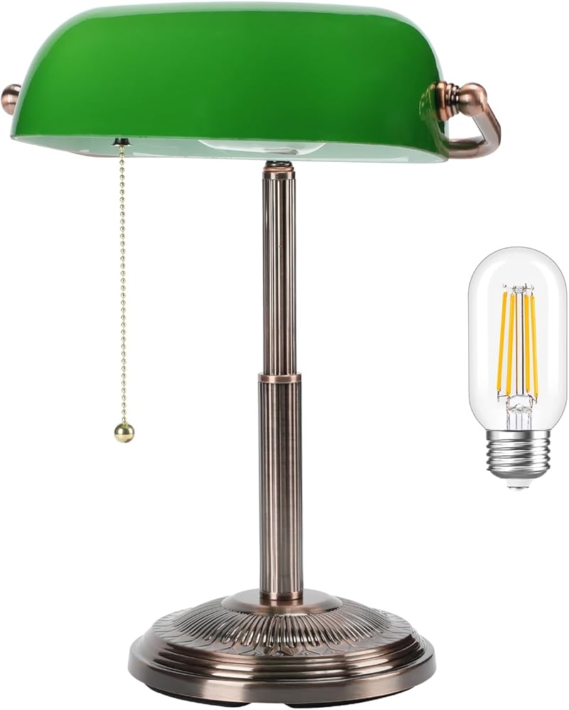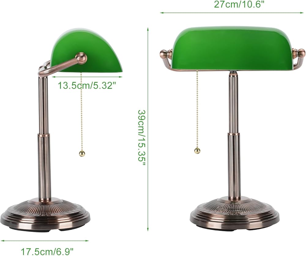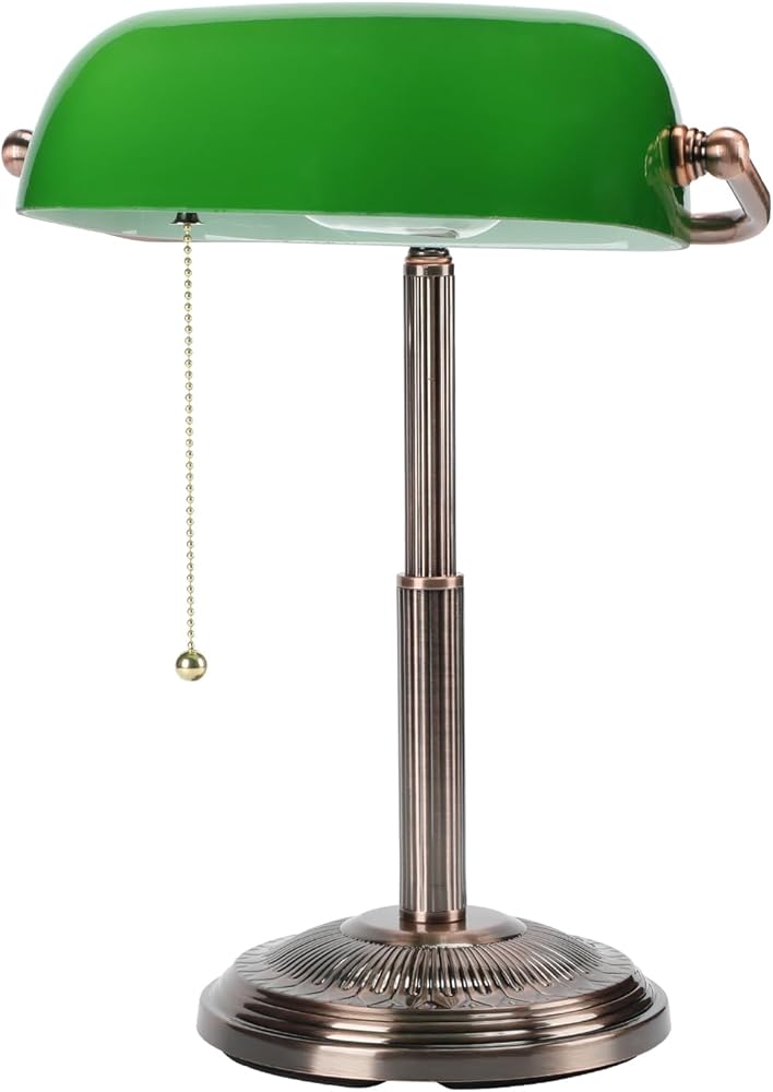 التصميم المستوحى من Vintage: يتميز مصباح مكتب Banker هذا بإنهاء النحاس الأحمر والمفتاح السحب ، مما يضيف لمسة من السحر الحنين إلى مكتبك المنزلي.