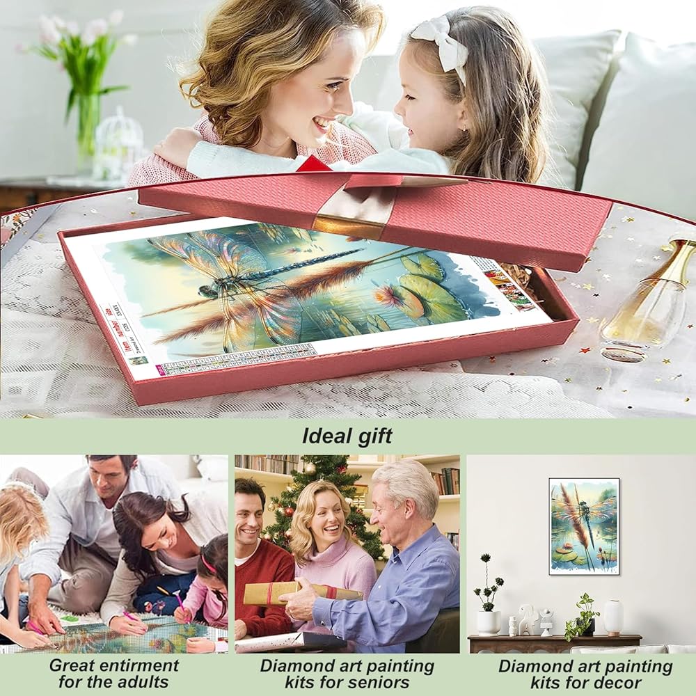 【تدريبات كاملة】 مجموعات الطلاء فن اليعسوب الماسي للبالغين ، تغطي الماس الدائري الصورة كاملة ، مما يجعل الصورة أكثر لامعة وواقعية ، إنها أكثر الديكور DIY شعبية في الوقت الحالي. إذا كان لديك ما يكفي من الوقت والصبر ومثل المشروع الصعبة ، فهذا مناسب لك تمامًا
