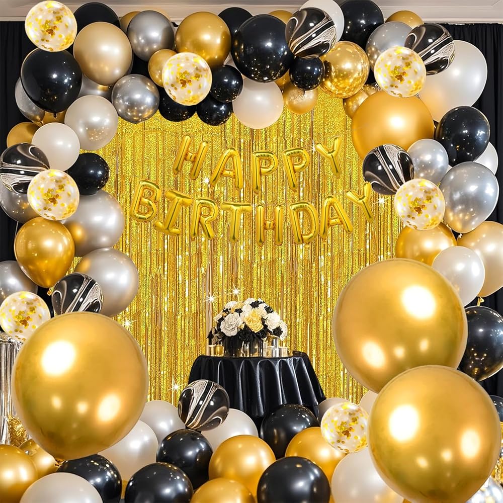يينكين 80 PCS الأسود روز الذهب البالون حفلة عيد ميلاد سعيد: ارفع احتفال عيد ميلادك بمجموعة بالون عيد ميلاد من 80 قطعة تتميز بمزيج مذهل من البالونات الصلبة ، واللون ، والبالون من الحمار الوحشي.