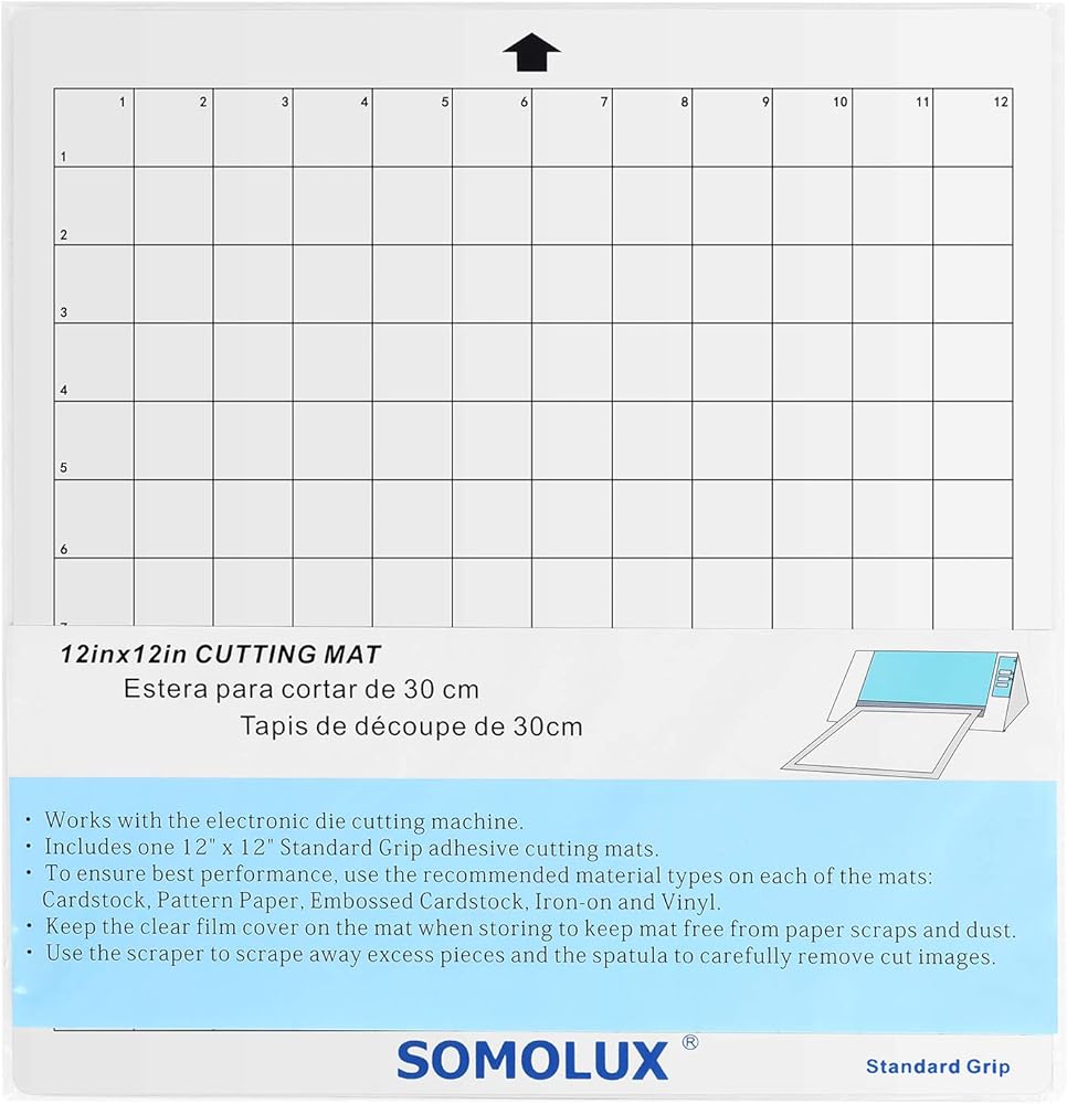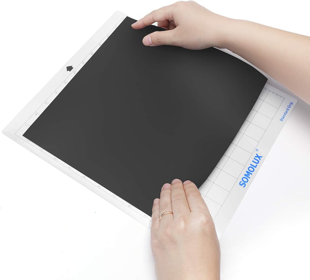 أنواع المواد الموصى بها. حصيرة ذات قبضة قياسية مناسبة للاستخدام على الفينيل، والبطاقات اللامعة، والكي، والكي اللامع، والورق المنقوش، والبطاقات المنقوشة، وورق الملصقات القابل للطباعة، وملصقات النوافذ.