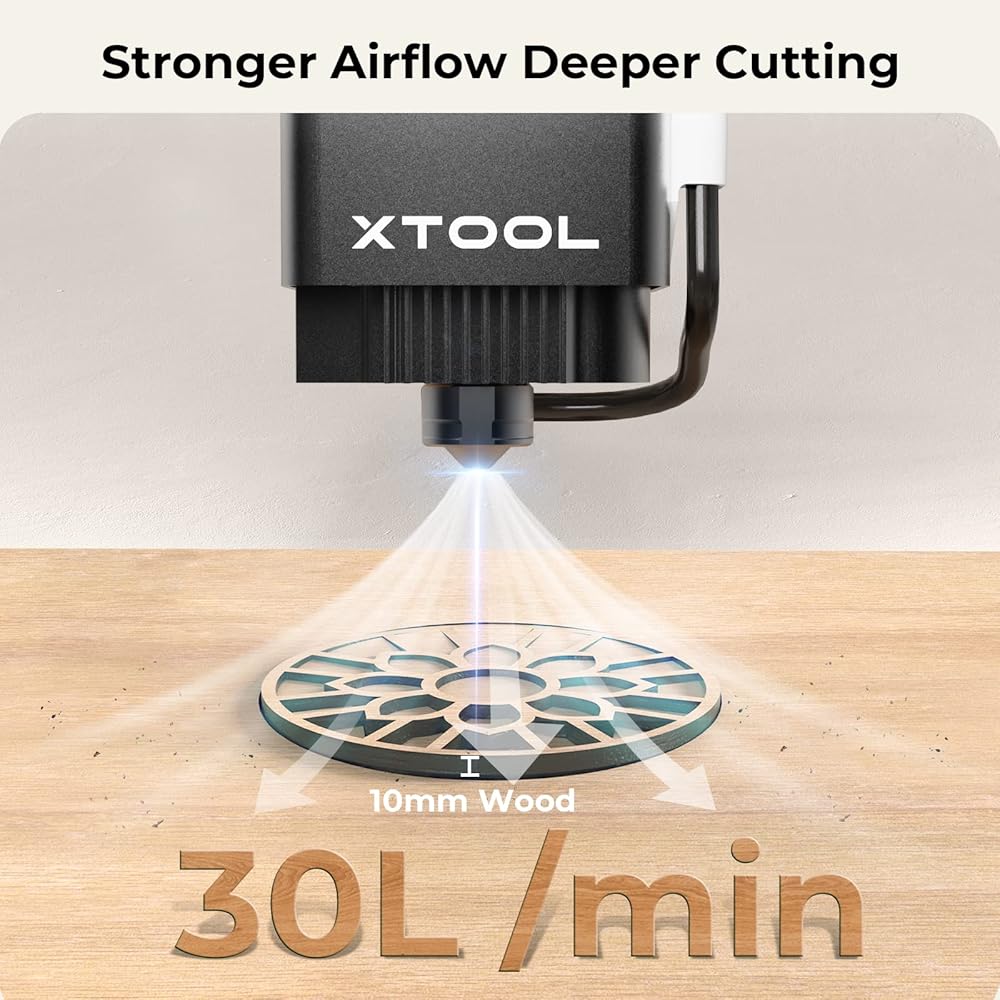 【حماية مجموعة Air Air Head】 Xtool M1 M1 لديها نظام إخراج هواء مستقر ينفخ الحطام المقبول والدخان الناتج خلال عمل رأس الليزر ، وحماية عدسة رأس الليزر من التلوث وتوسيع نطاق حياة رأس الليزر