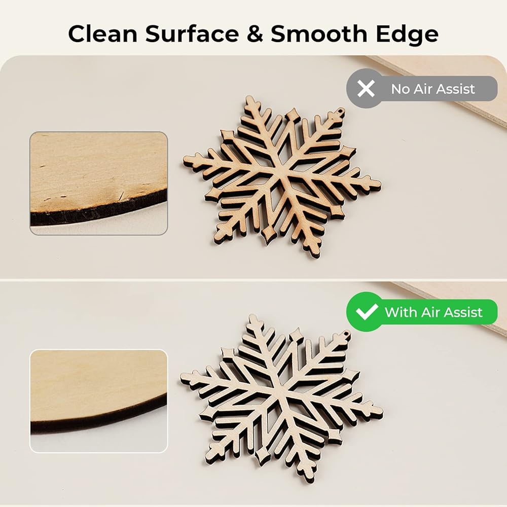 【تخفيض أعمق وأسرع】 30L/دقيقة إخراج تدفق الهواء الكبير ينفخ الدخان والحطام الناتجة أثناء قطع الليزر ، مما يؤدي إلى قطع أسرع وأعمق ؛ زيادة كفاءة الليزر ، وتوفير وقتك