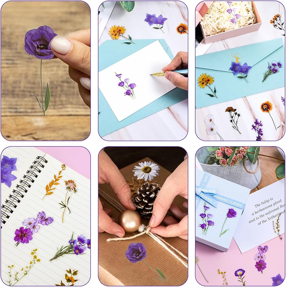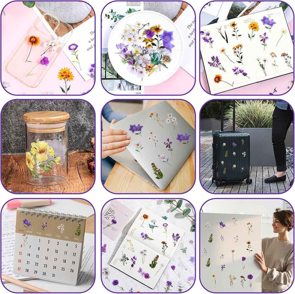 • 【High-quality materials】 The pressed flower stickers is made of high-quality PET, which is not easy to break and deform, with smooth surface and edges, and will not cut your hands. The exquisite craftsmanship makes the flowers more realistic, and the materials will not fade and can be preserved for a long time, suitable for long-term use.