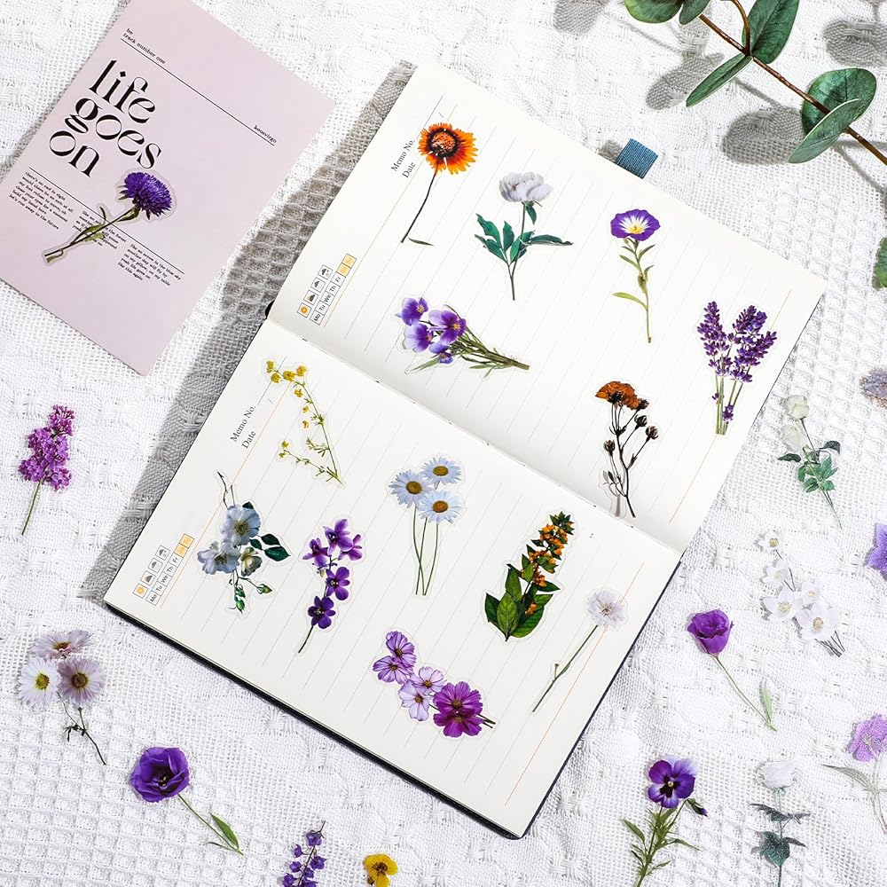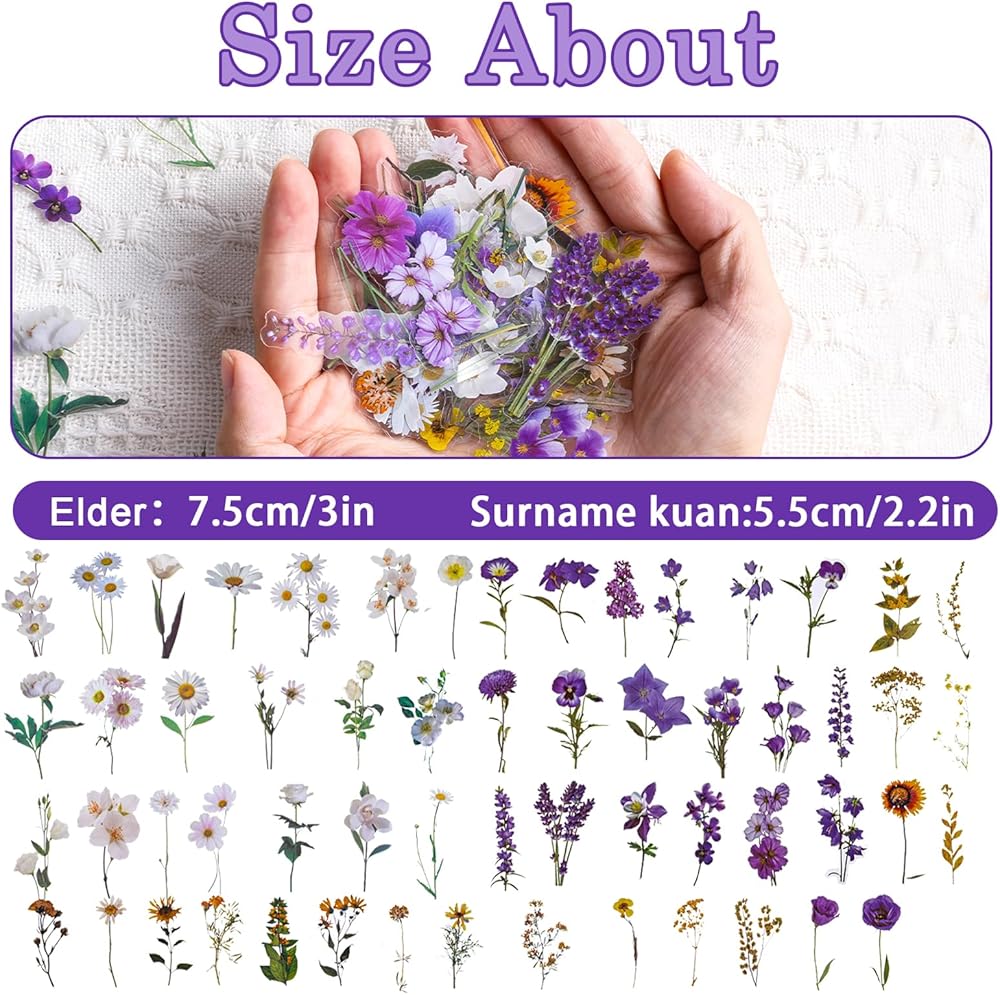 120pcs ملصقات الأزهار الشفافة ، ملصق مصنع للحيوانات الأليفة ، أزهار ملصقات للاصطدامات ، ملصقات طبيعية عتيقة لصنع اليومية ، صنع ألبومات الصور ، بطاقات تزيين ، DIY (اللون الأرجواني الأبيض)