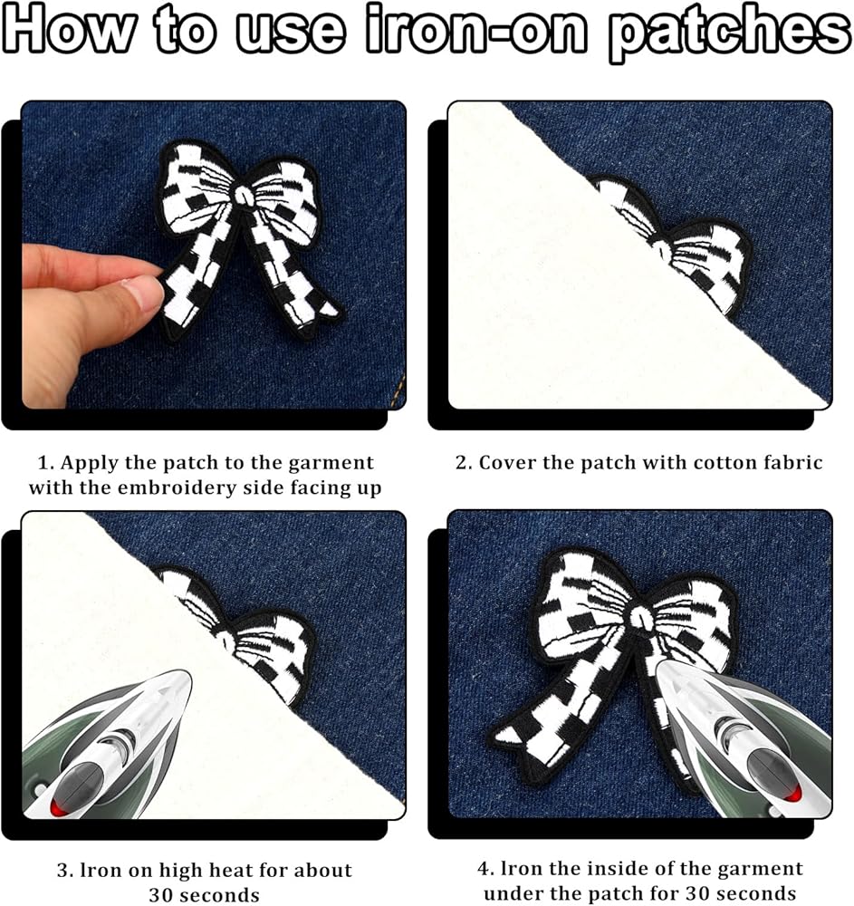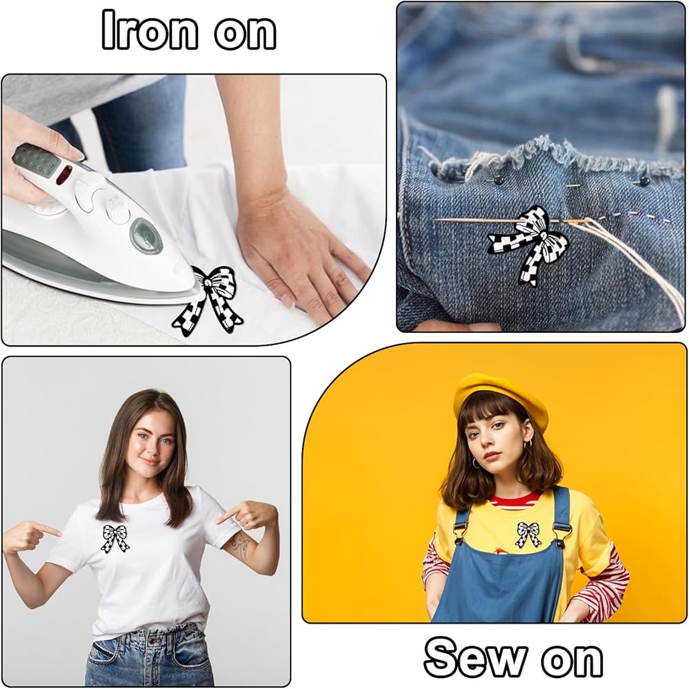 • 【Classic Design】These iron on patches comes bow-shaped design with black checkered pattern design, adding a stylish and trendy touch to your clothing or accessories.