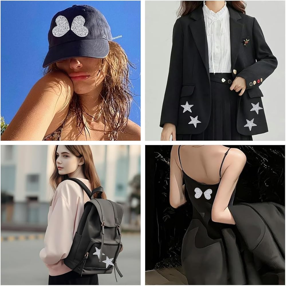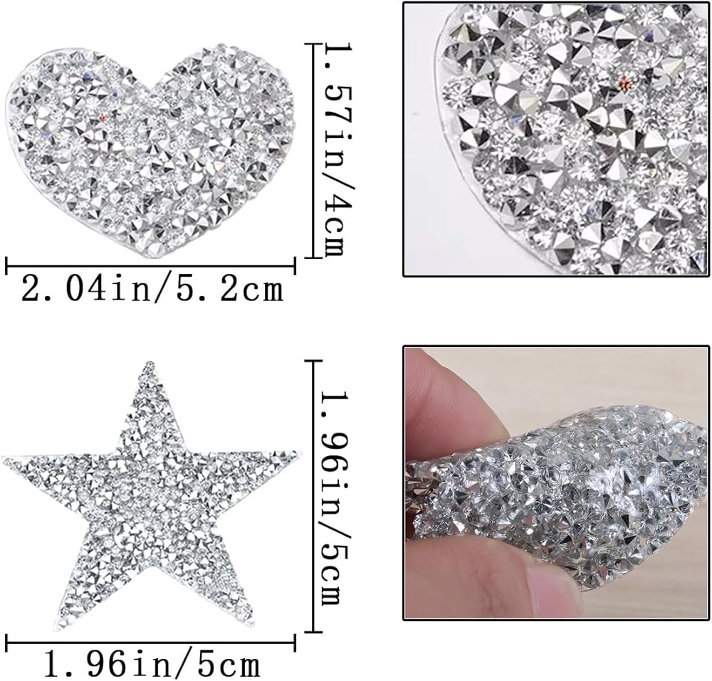 【PACKING LIST】You will receive 10 heart-shaped rhinestone patches and 10 five-pointed star rhinestone fabric patches, the quantity is enough for daily use, making your clothes more personalized