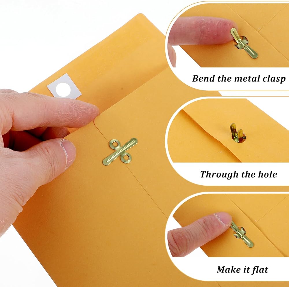 【Double Seal Design】Each brown envelope features a robust clasp closure and a gummed seal, ensuring the contents stay secure during transit or while in storage. The double metal clasps and moisture-activated adhesive seals keep scripts, photos, certificates, or other items safe whether they are shipped in bulk or stored. This makes them ideal for both work and personal use.