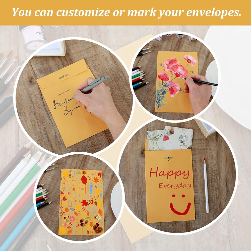 【Reliable Material】These 6x9 inch envelopes are made of 28lb kraft material, which is durable and resistant to breaking, deforming, or fading. With moderate thickness, they are suitable for most documents and correspondence, making them perfect for personal letters as well.