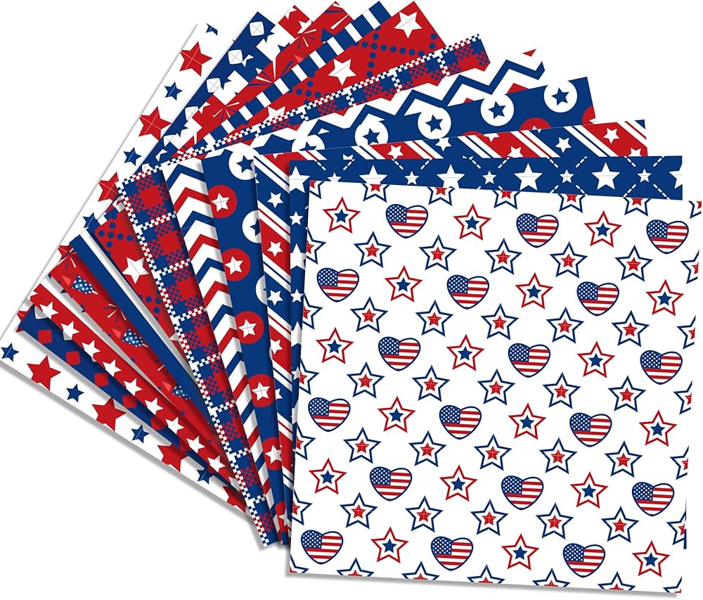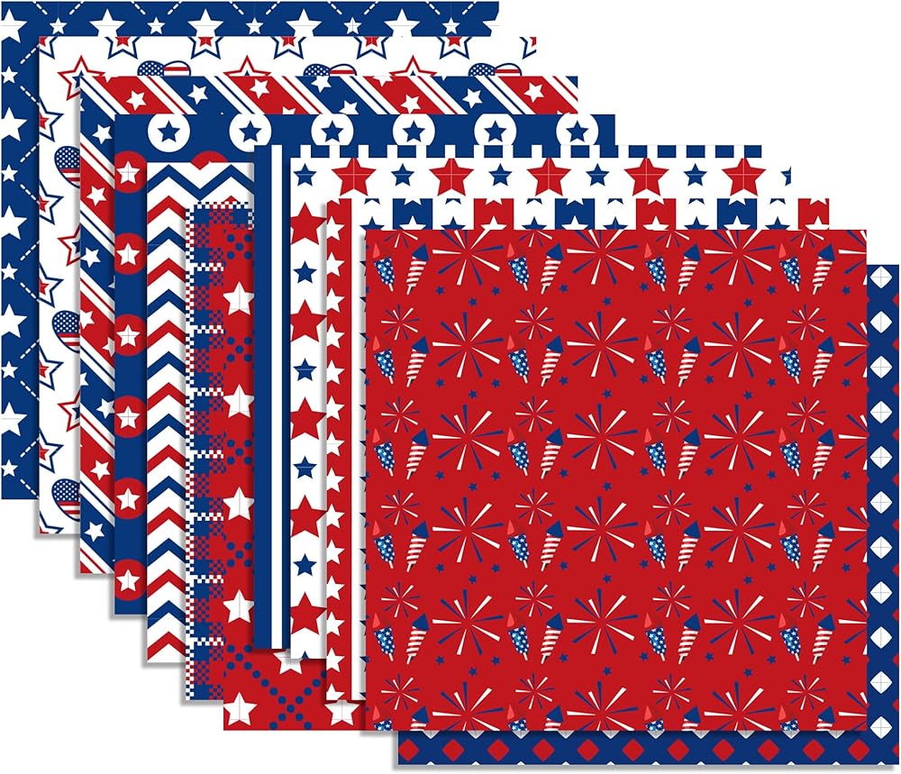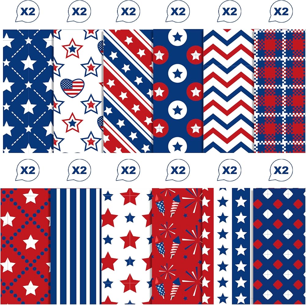 【PACKAGE CONTENT】: You will get 24 sheets 11.8'' × 11.8'' inches of patriotic scrapbook paper pad in 12 patterns, 2 sheets of each, sufficient to meet your various DIY needs for art crafts.