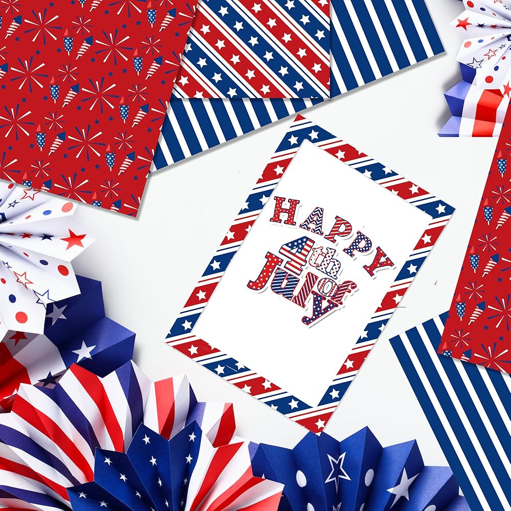 【MULTIPLE USAGE】: Our 4th of July pattern paper can be used for multiple functions, such as scrapbooking, name plaste, greeting card, postcard, invitation, DIY die cuts, origami, photo album decoration, etc., widely applied to birthday, Independence Day, Memorial Day, Veterans Day, holidays, family gathering and daily life. Decorate your life with these art paper!