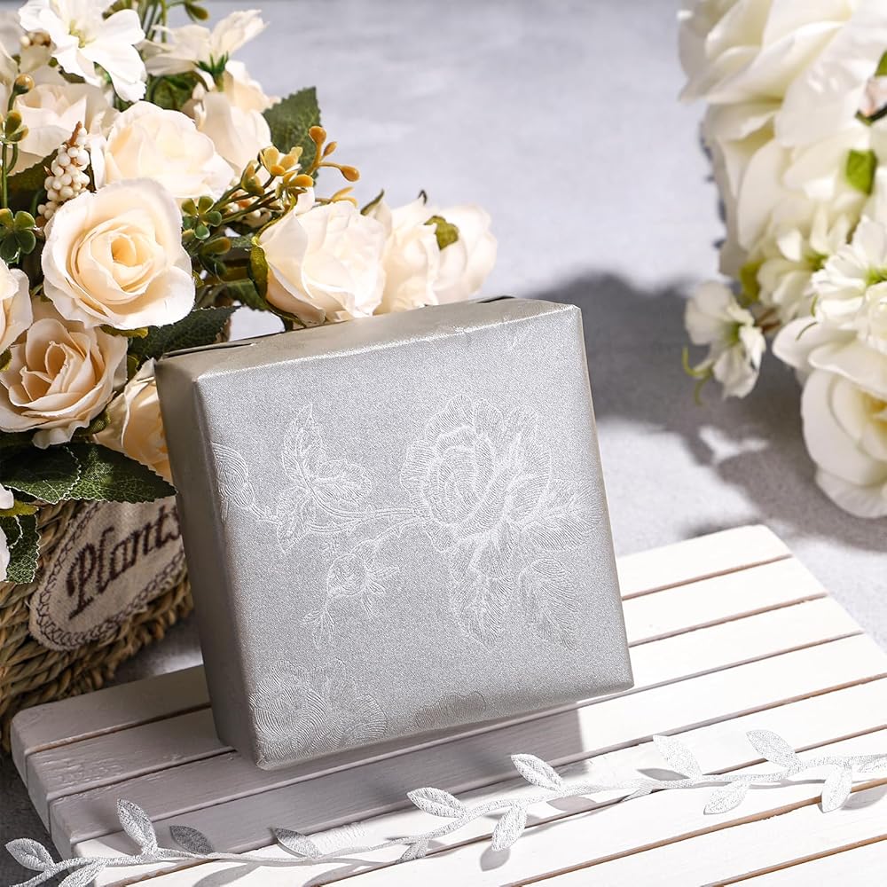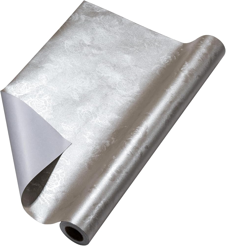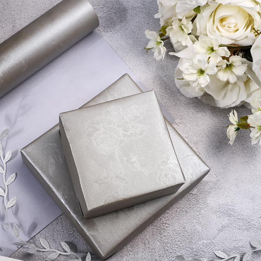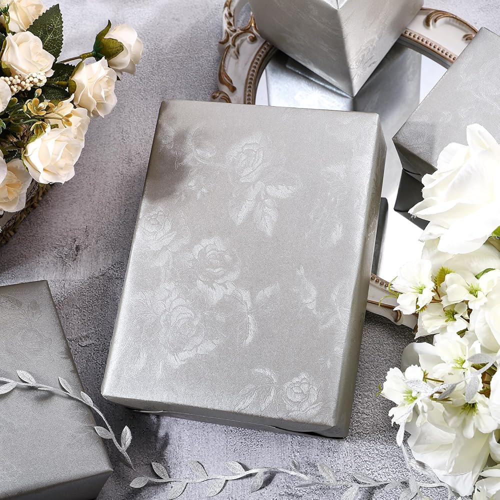 Size: Each roll is 17 inches (43.2 cm) in width and 32.8 feet (10 m) in length. Total with 1 mini roll of wrapping paper; Design: Pearly luster wrapping paper with silver large embossed rose, make the gift wrapping be more eye-catching; Material: Made from high-quality paper with a pearly finish, durable and resistant to tearing. Please avoid storing items in direct sunlight