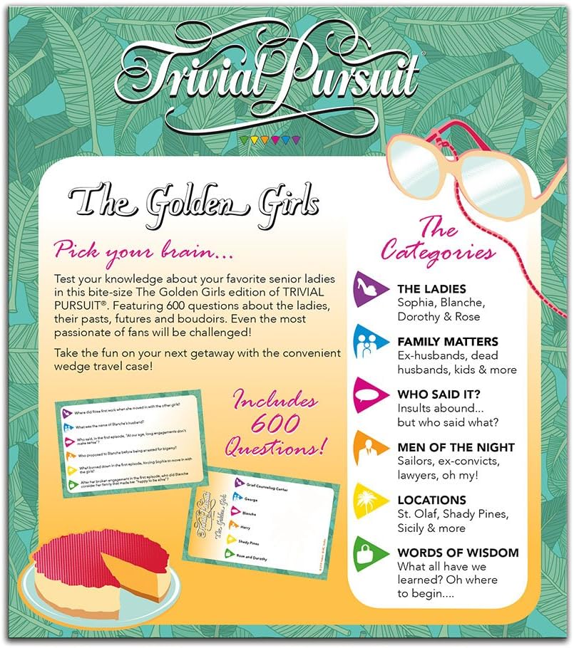 The Golden Girls Trivial Pursuit bite-size edition contains 600 questions based on all seven seasons of the Emmy Award-winning TV series.