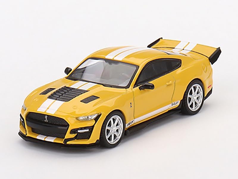 شيلبي GT500 Dragon Snake Concept Yellow مع خطوط بيضاء محدودة الإصدار إلى 3240 قطعة في جميع أنحاء العالم 1/64 DIECAST MODEL CAR بواسطة المنمنمات الحقيقية MGT00535