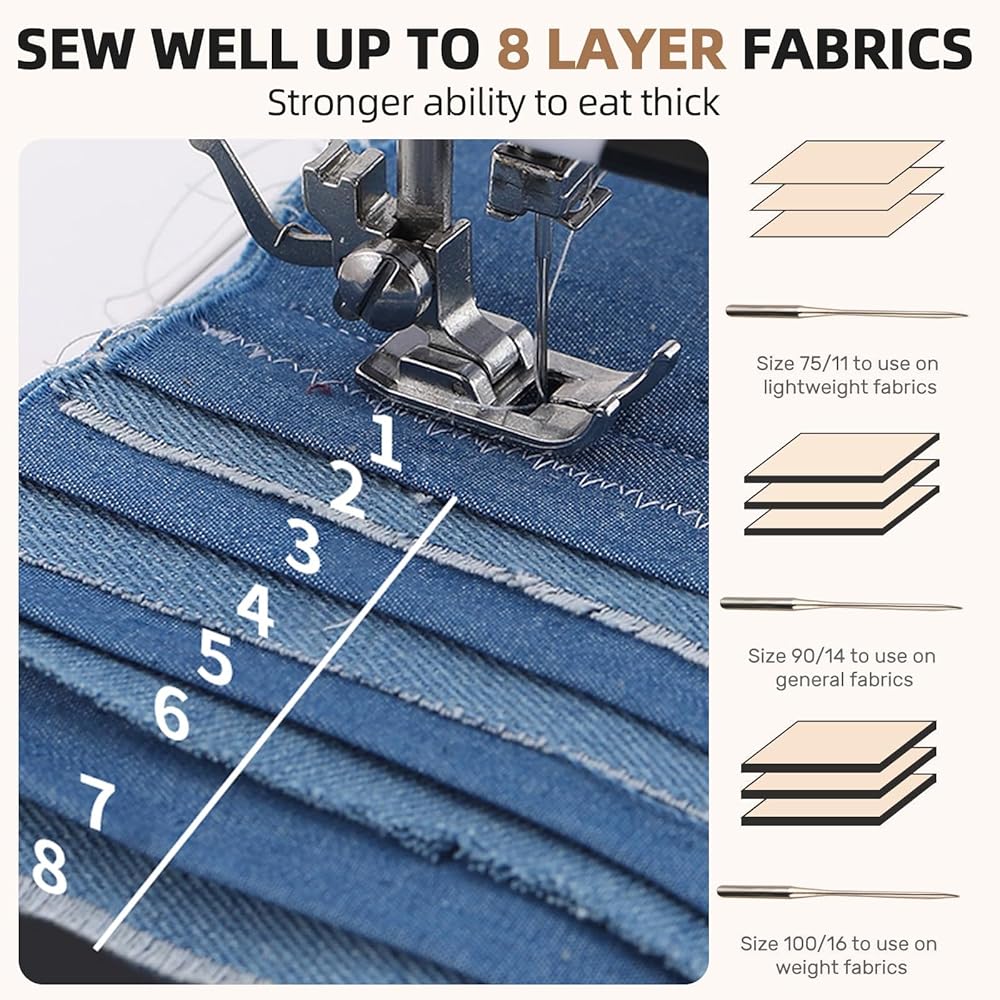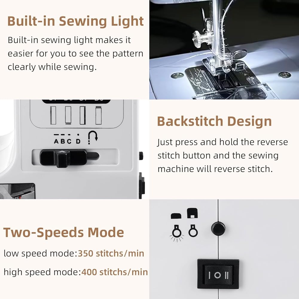 • Enhanced Visibility and Efficiency: Equipped with a built- in LED light, our sewing machine provides sufficient illumination for nighttime or low- light sewing tasks. Built- in thread cutter makes it effortless to trim excess thread once your work is completed
