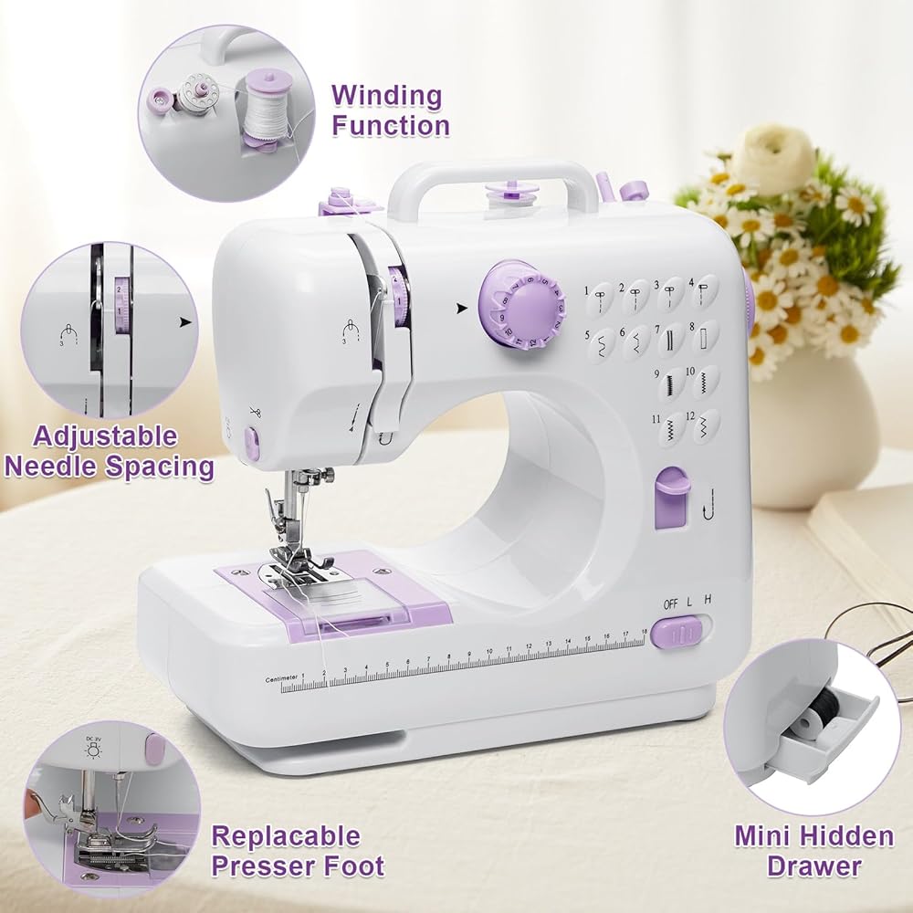 آلة الخياطة Yuehuam للمبتدئين ، آلة الخياطة الكهربائية الصغيرة المحمولة مع 12 في غرزة 2 سرع