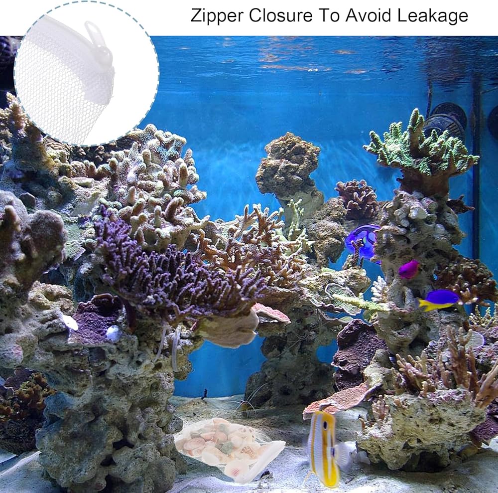Multi-purpose: This aquarium filter media bags with zipper is suitable for a variety of filters, including but not limited to freshwater tanks, water tank filters and power filters, meeting a wide range of filtration needs. The reusable bags with zipper for activated carbon is very suitable for various large aquarium filter media, such as activated carbon, bio balls, zeolites, ceramic rings, crushed corals, etc