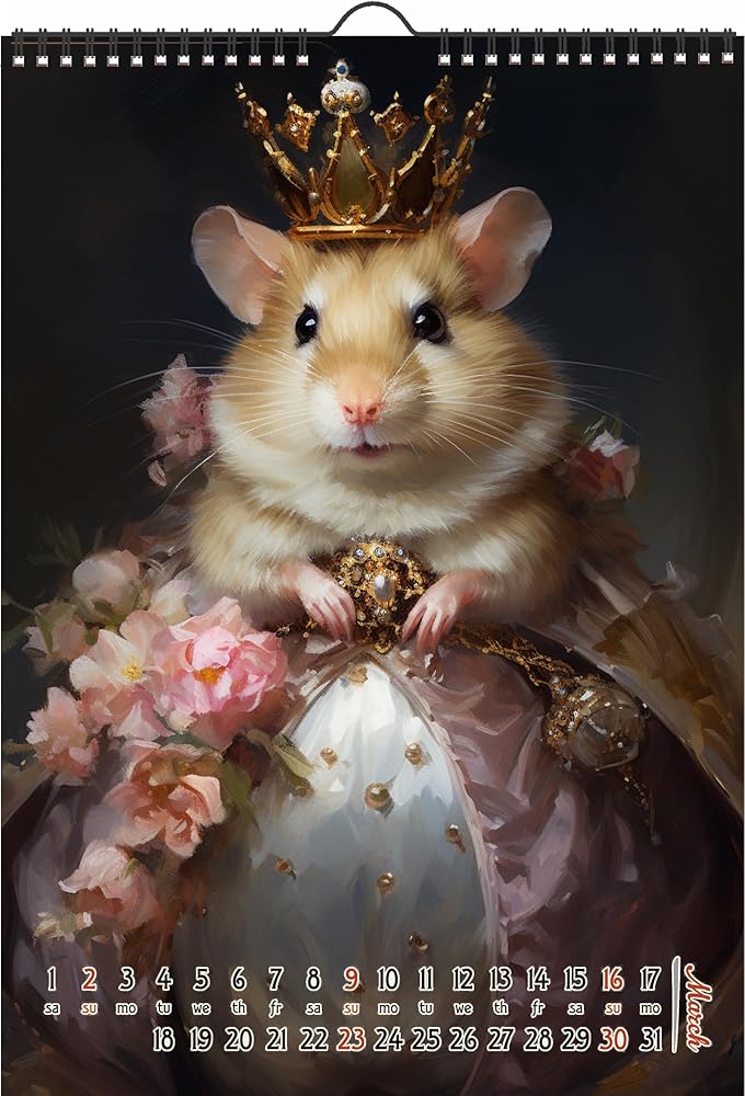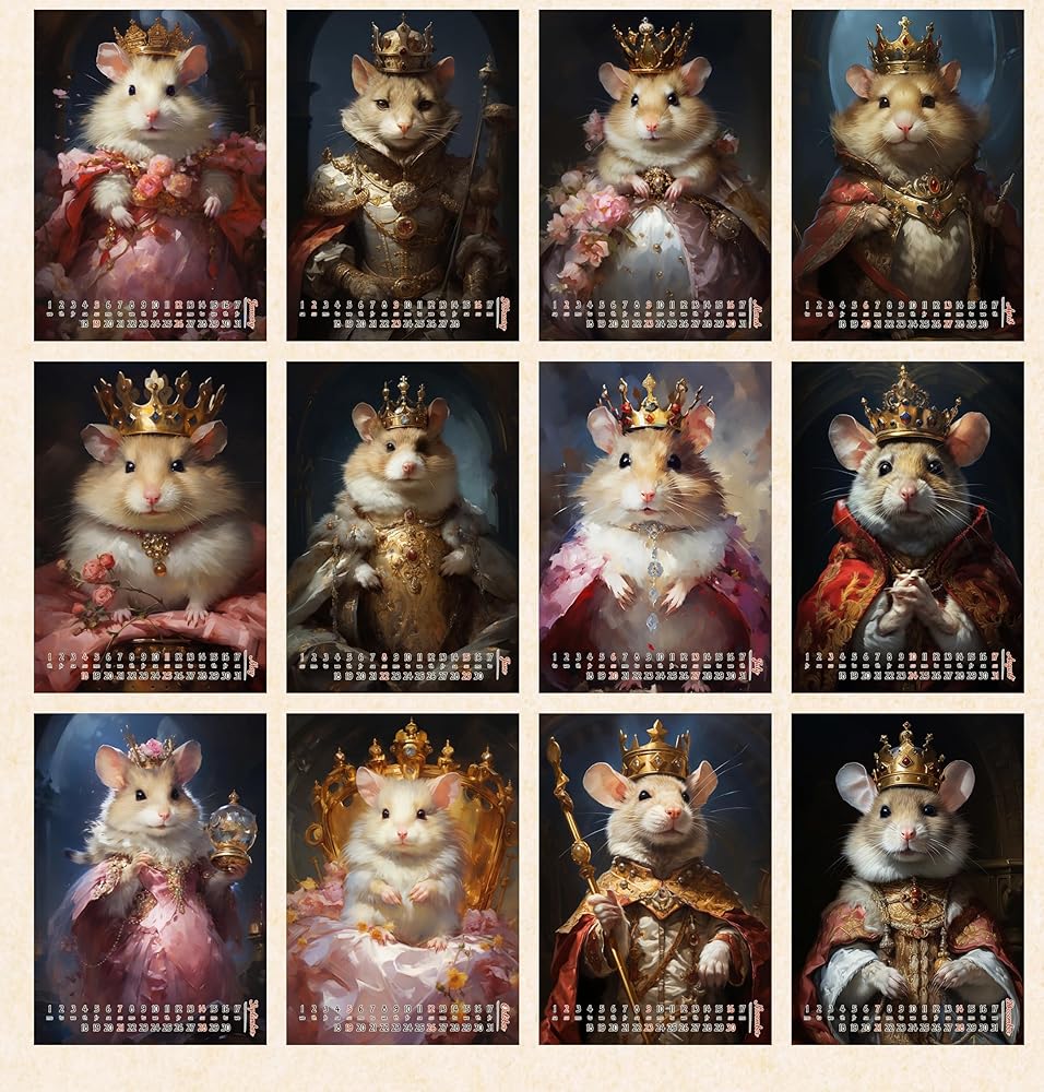 2025 تقويم الجدار [12 صفحة 8 "x12"] الهامستر اللطيف كملوك ماجستير وملكات خمر كتاب توضيحي