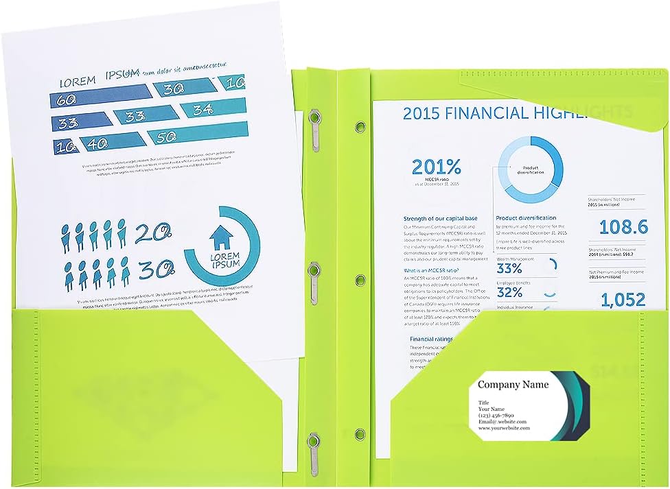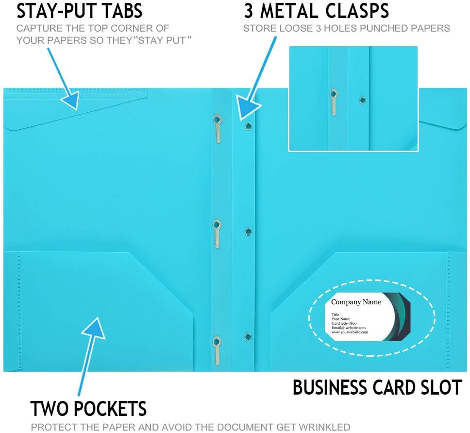 مجلدات بلاستيكية شديدة التحمل مع جيوب وشوكة: مصنوعة من مجلدات الشقوق البلاستيكية 3 من مادة بولي شاقة بسمك 0.5 ملم ، مما يجعلها أكثر متانة من المنتجات المماثلة في السوق. هذا يضمن أن يتمكنوا من تحمل الاستخدام اليومي وتوفير دعم موثوق لمستنداتك.