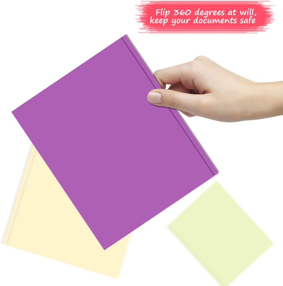 تصميم ممتاز مع علامات تبويب الإقامة: من أجل الحفاظ على مستنداتك المهمة آمنة ومنعها من الانزلاق ، أضفنا علامات تبويب الإقامة على جانبي المجلدات البلاستيكية لدينا. تلتقط علامات التبويب هذه بشكل آمن الزوايا العليا لملفاتك ، مما يوفر حماية موثوقة لمستنداتك المهمة في أي وقت وفي أي مكان.