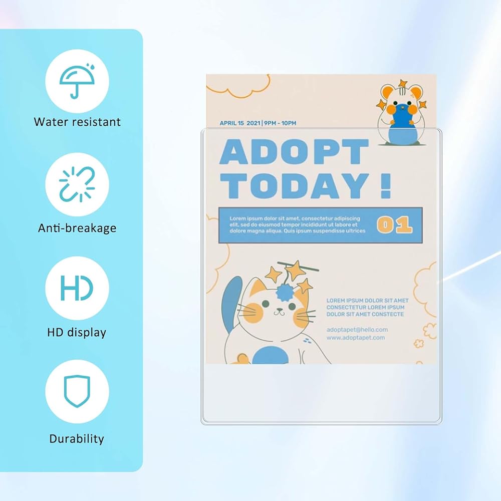 • 【Clear Appearance】 These document protectors 8.5 x 11 are transparent, making them visible from both 2 sides, and convenient and easy for you to quickly identify and find archives, copy paper, photos, records, recipes, important documents, and pictures; Due to the production process, the surface of the product may have some abrasion, which does not affect the use, and after you insert the paper into the protector, the abrasion will be invisible