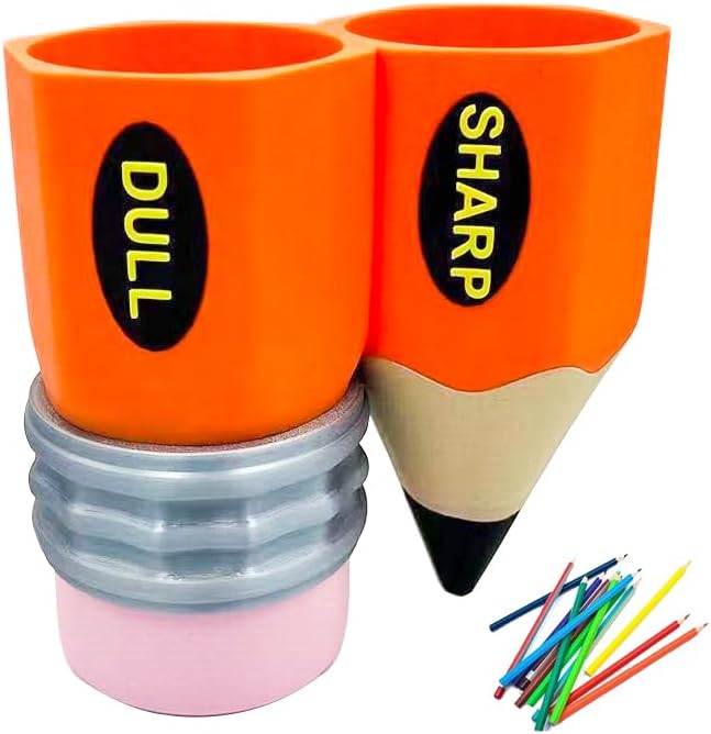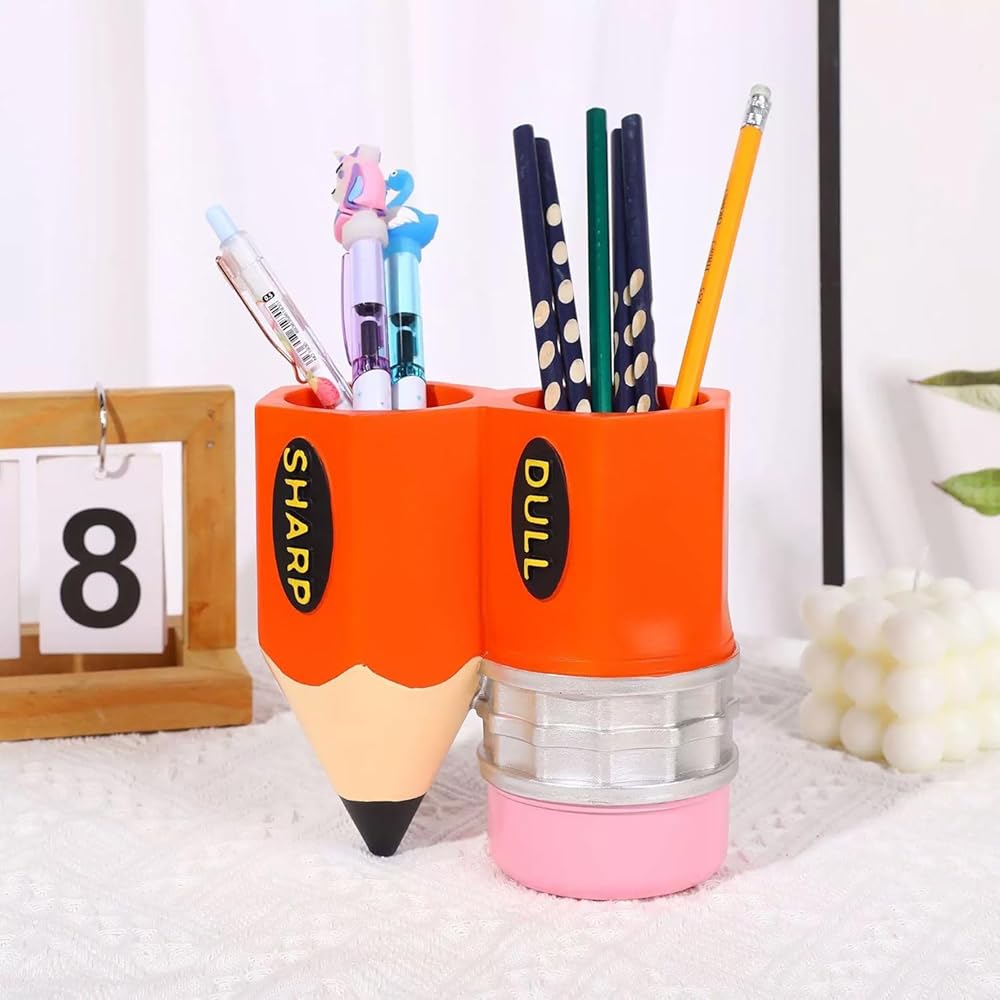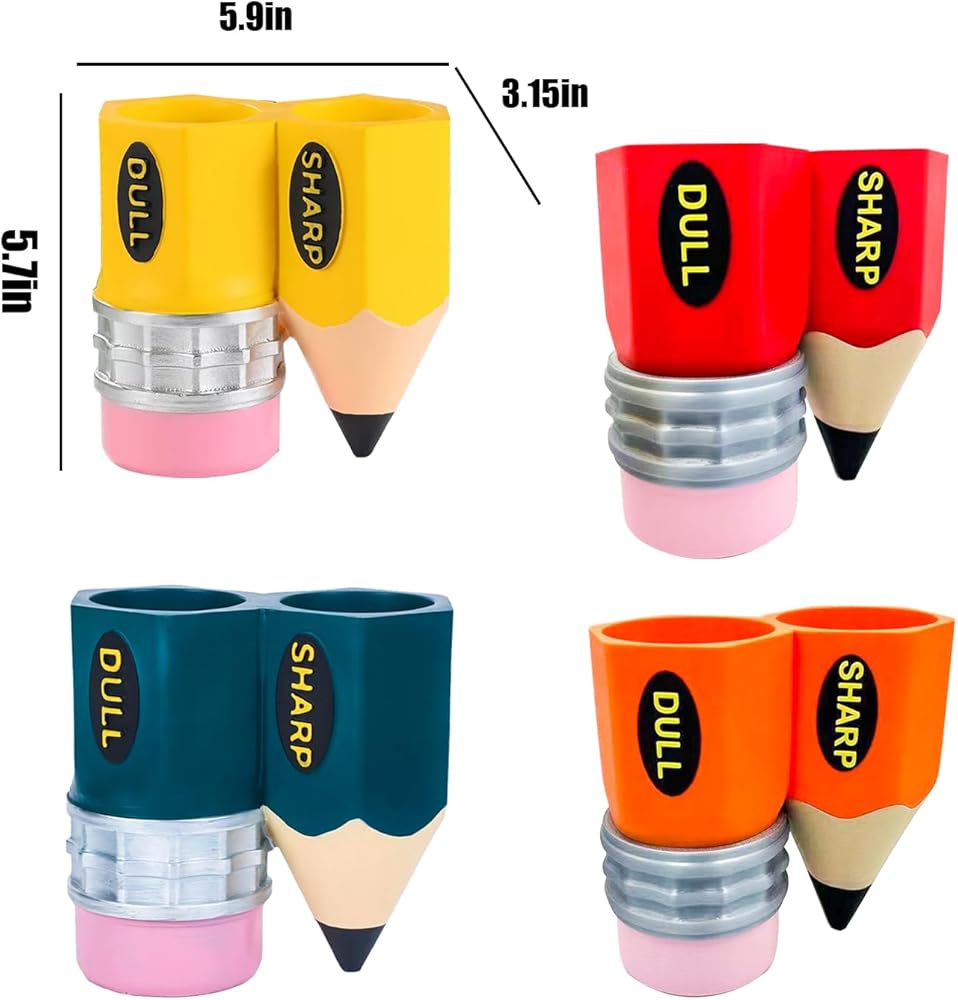 Product Details: Product: Sharp-Dull Pencil Holder Colors: Green, Orange, Red, Yellow Material: Resin Size:5.7 x 3.1 x 5.9inches Handmade Package Includes: 1 Sharp-Dull Pencil Holde