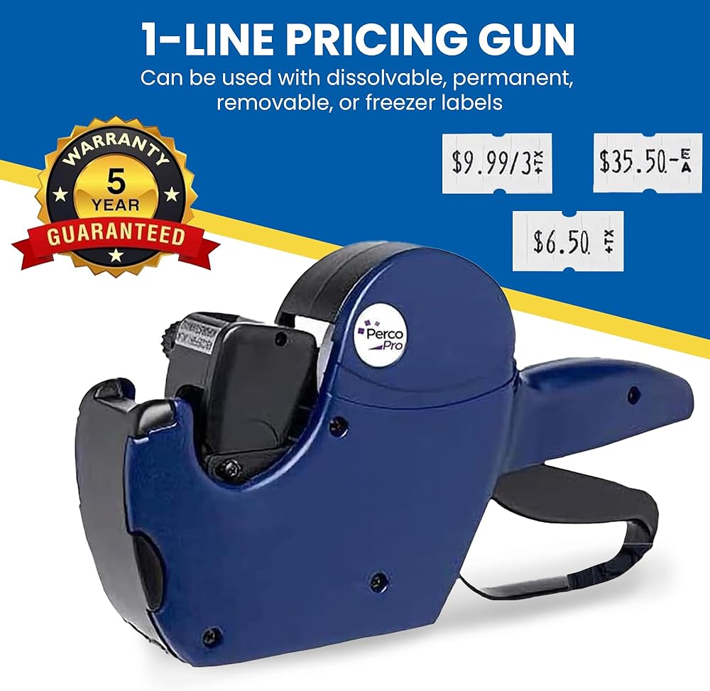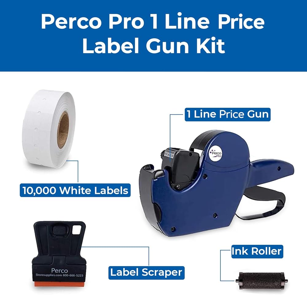 مجموعة Perco Pro تسعير الأسلحة والعلامات: تتضمن كل مجموعة أسعار علامة تسمية جديدة من خطوط سطر جديدة ، و 10،000 علامة أسعار بيضاء ، ودليل تعليمات ، و inker. *ملاحظة: قد يتم تحميل Inker مسبقًا في مسدس التسمية السعر