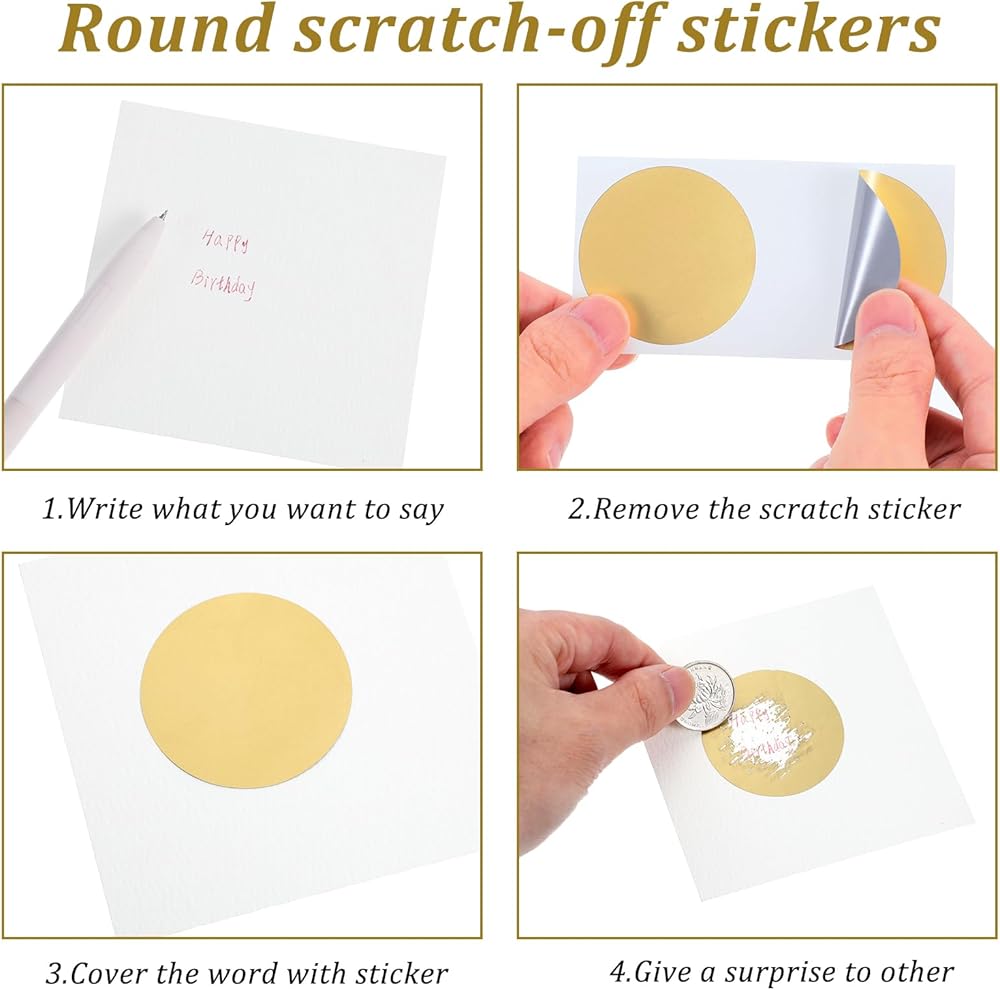 Complete Package: Each pack includes 50 pieces of scratch off stickers 2 inch in diameter, with a mix of gold and silver colors. The stickers come in a convenient bag packaging, making them easy to store and transport. With a net weight of 0.7 oz and a packaging size of 4.33 × 2.76 × 0.39 inches, these stickers are perfect for any DIY project.