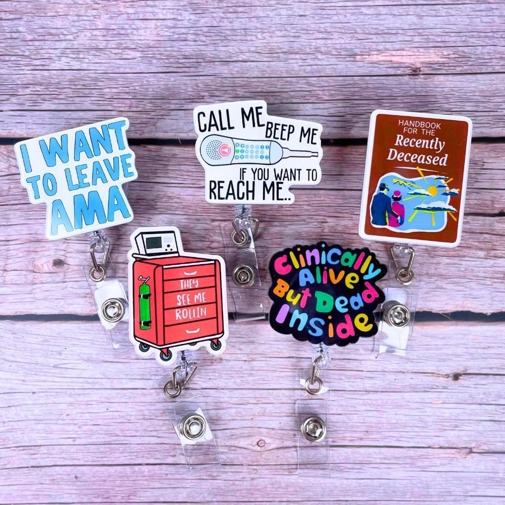 Introducing our Funny Nurse Badge Reel Pack of 5 – a delightful combination of humor and functionality tailored specifically for healthcare professionals like you. These badge reels don't just hold your identification; they also inject a dose of laughter into your demanding work environment, creating a cheerful and engaging atmosphere.