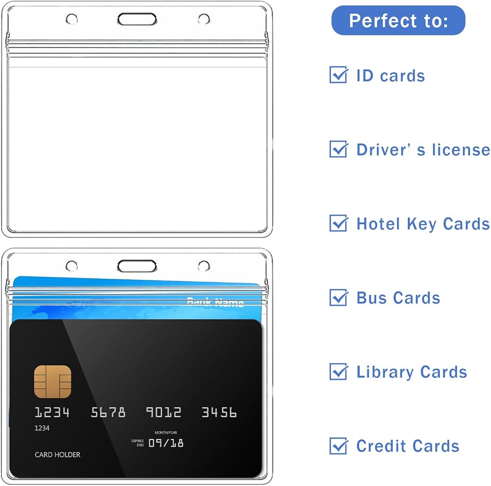 Waterproof and Reusable: The name tag holder with clips is equipped with a convenient resealable zipper to protect your items from moisture and accidental splashes, and keep the cards safe no matter what the weather or accidents happen.