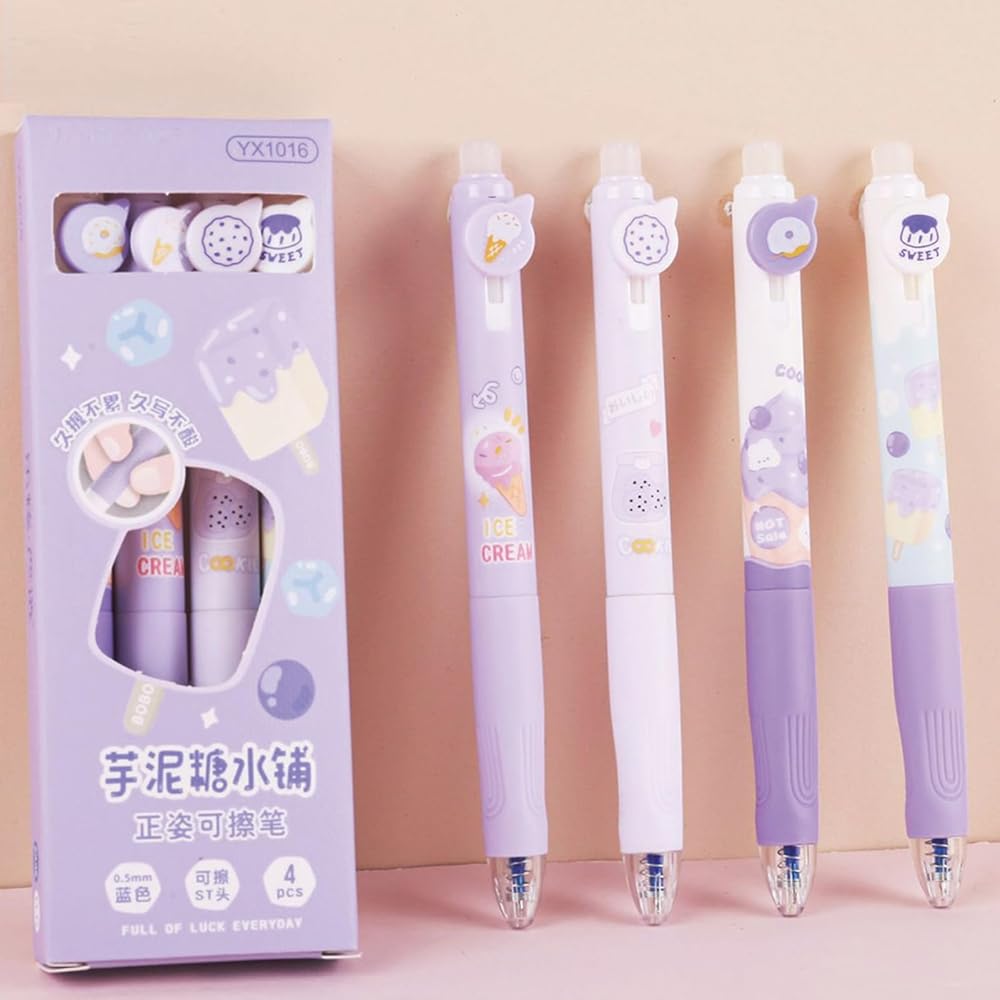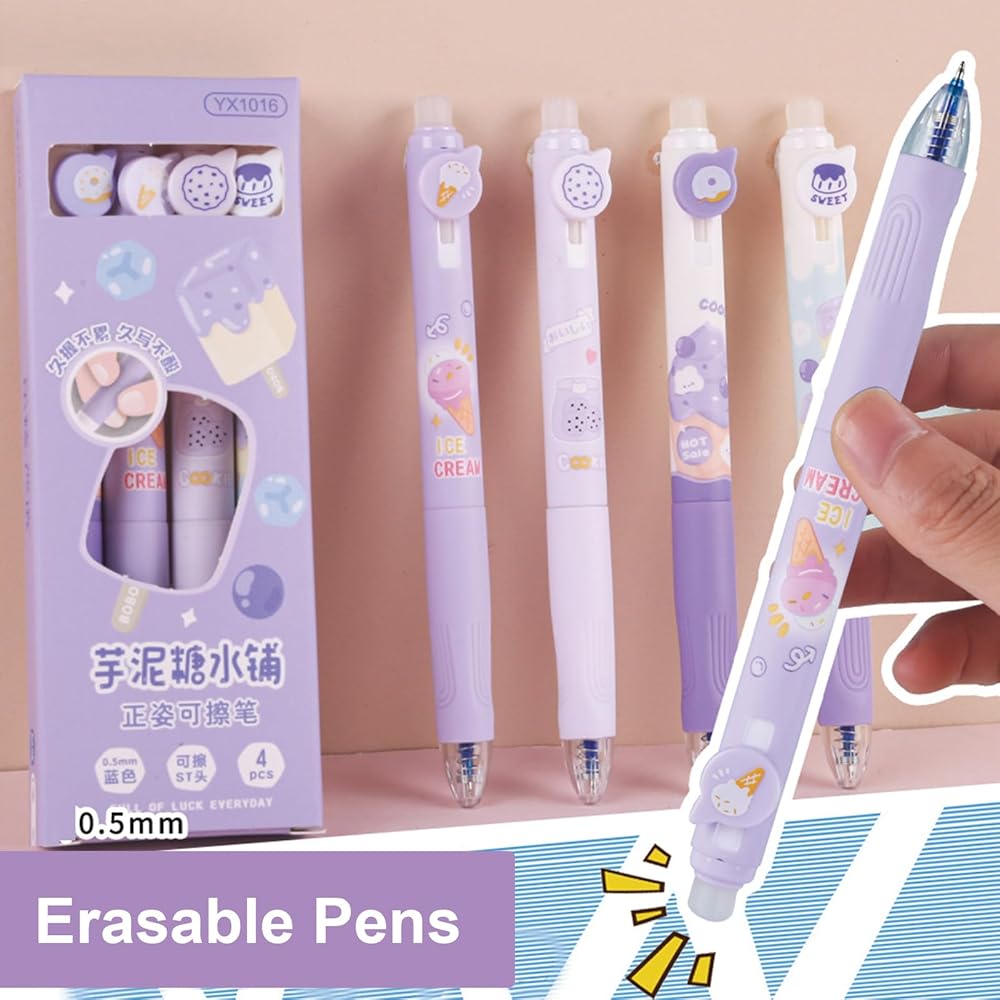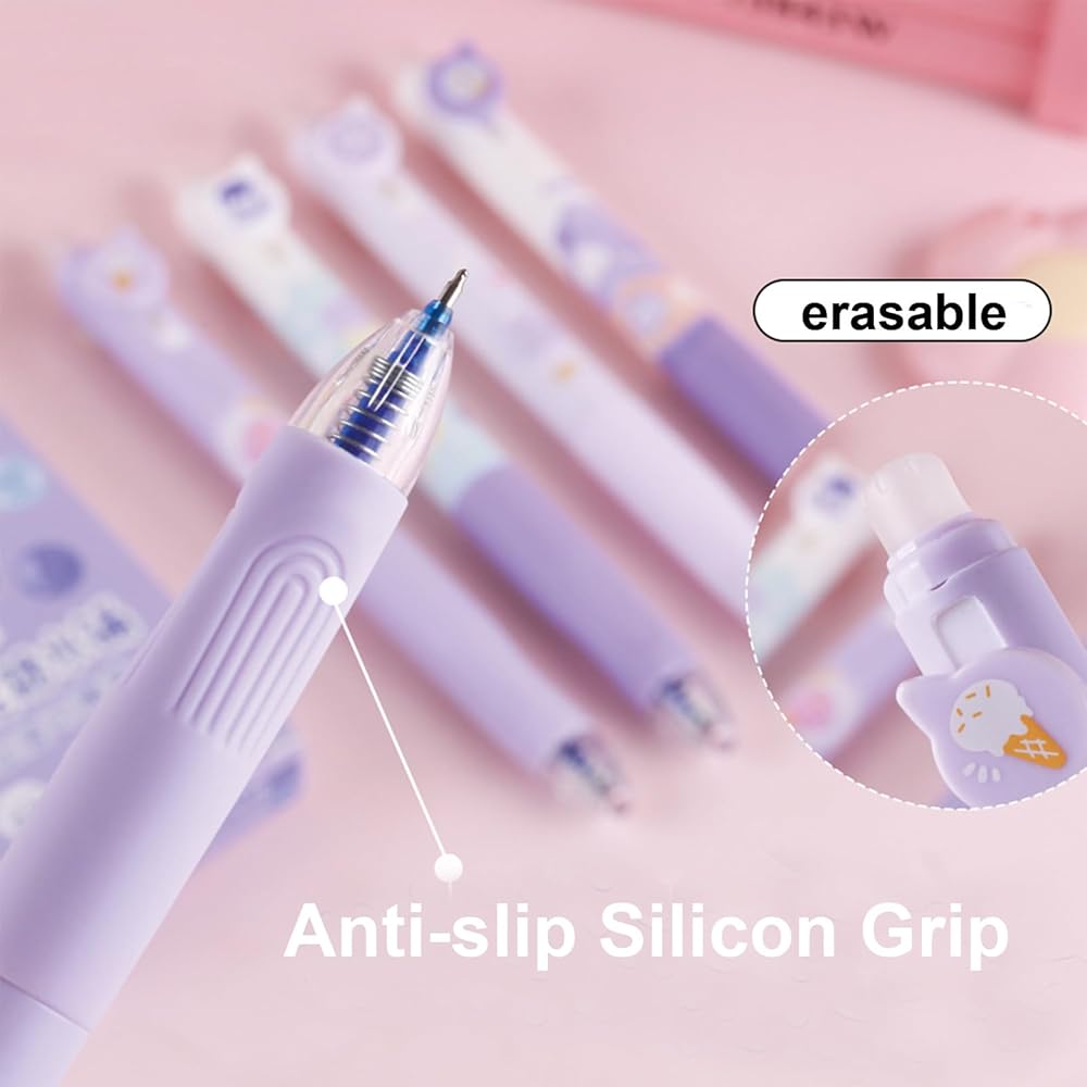 • Erasable Gel Ink Pens: Each gel pen is designed with rubber eraser at the top, you can erase errors out with top eraser like a pencil, no residue and no damaging documents. Slide down the cartoon patch to write.