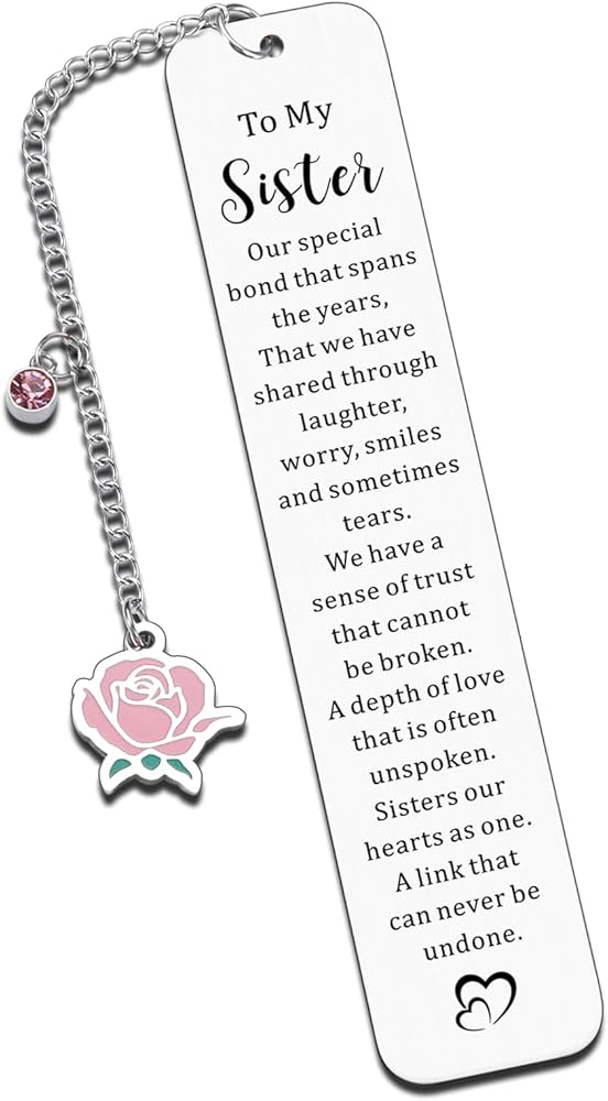 Evgraved with warm words, 'to my sister our special bond that spans the years...', such motivational words can send your deep love to your sisters and will make her be positive in her life because of your love! If your beautiful, adorable sister love reading books? If she becomes interested in reading, this engraved exquisite bookmark is soooo suitable for your sister, godsistergirls, teen girls, gen z girls.